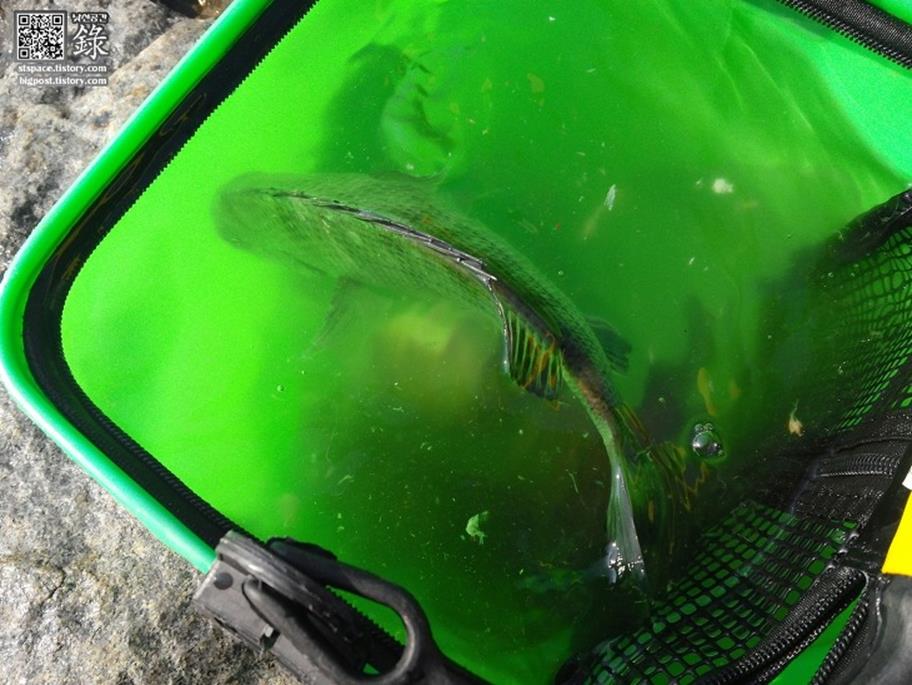 1박 3일의 야영 동안 감생이 2마리, 볼락 수십 마리, 노래미 10여 수, 용치 10여 수, 졸복 서너 마리, 이름 모를 바라쿠다 치어 같은 물고기 2마리, 붕장어 2마리, 깔따구(농어 새끼) 4마리 등을 낚아냈습니다. 첫날의 조과는 썰물 때 살림망이 갯바위에 올라탔는지 게들의 밥이 되고 말았지만, 낚시의 즐거움을 만끽할 수 있었습니다.