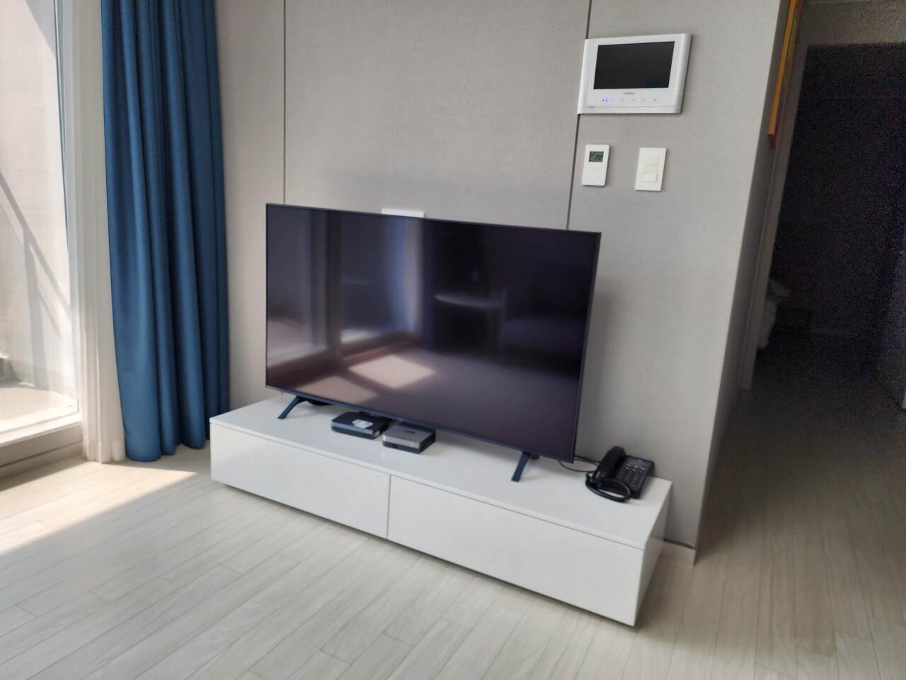 호텔의 객실 내에는 TV와 소파가 마련되어 있으며, 천장형 에어컨이 설치되어 있어 여름철에도 시원하게 지낼 수 있습니다.
