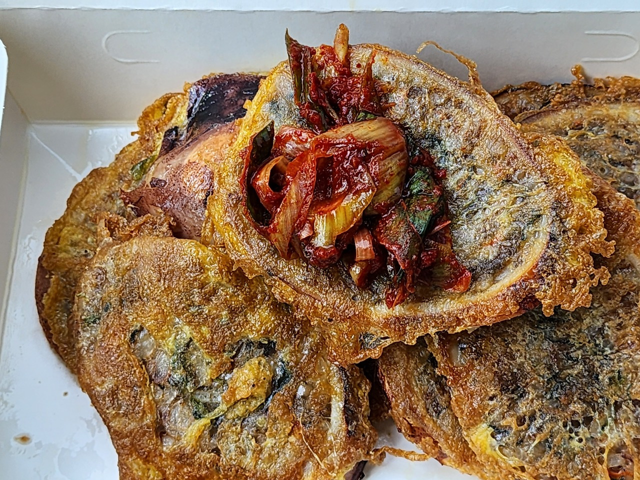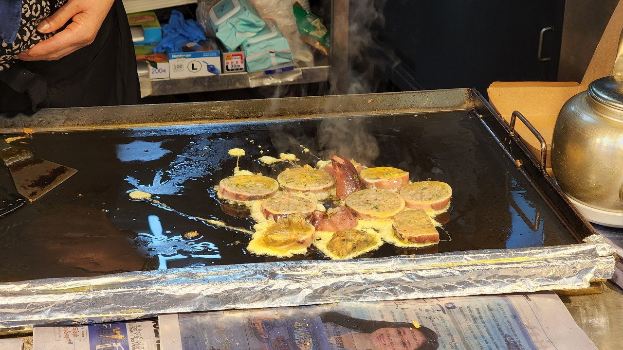 - 갓 부쳐낸 계란 옷 입은 순대로 바삭하면서도 촉촉