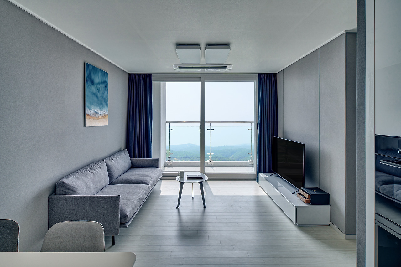 객실과 거실은 천장형 에어컨으로 시원함을 유지할 수 있습니다. 거실과 방마다 베란다로 나갈 수 있는 점도 좋았습니다. 특히 거실에는 텔레비전과 소파가 마련되어 있어 편안하게 시간을 보낼 수 있었습니다. 다만, 넷플릭스와 유튜브는 지원되지 않고 케이블 채널만 제공되는 점을 참고하시기 바랍니다.