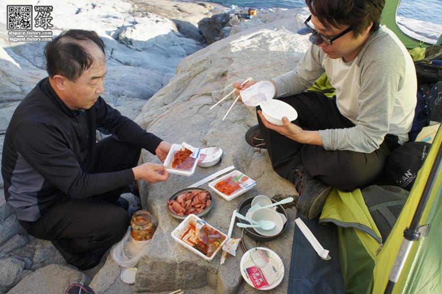 갯바위 야영낚시의 매력은 단순히 낚시에만 그치지 않습니다. 자연 속에서의 식사도 그 경험의 일부입니다. 물론, 갯바위 캠핑은 오지 캠핑의 성격을 띠기 때문에 먹거리 준비에 있어서는 실용적이고 간소하게 접근해야 합니다. 신선한 해산물과 간단한 취사도구만 있으면, 자연 그대로의 맛을 즐길 수 있습니다.