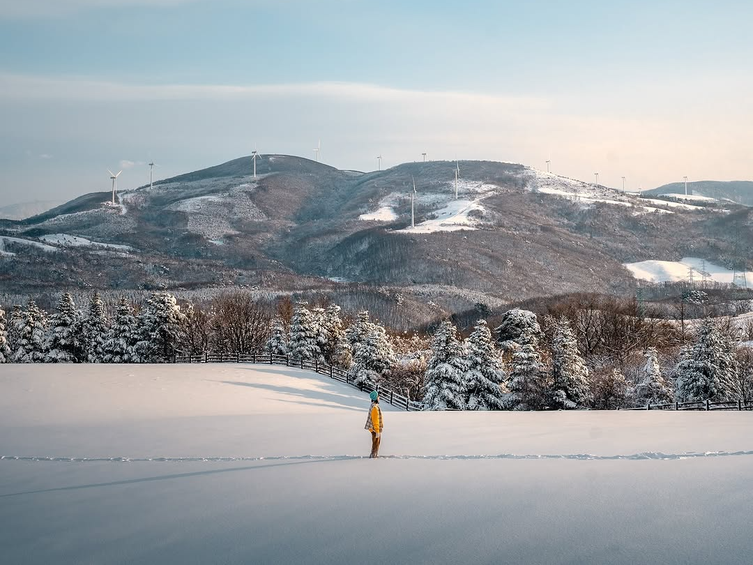 완만하게 이어지는 언덕과 풍력발전기가 어우러진 풍경은 마치 북유럽에 온 듯한 느낌을 주며, 특히 일몰 시간대에는 붉은 노을과 눈밭이 대비돼 사진 촬영 명소로 인기가 높습니다. 서울 및 수도권에서의 접근성도 좋아 당일치기 겨울 여행지로 활용도가 높습니다.