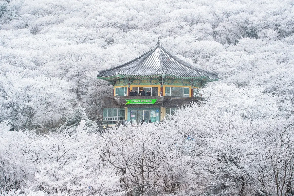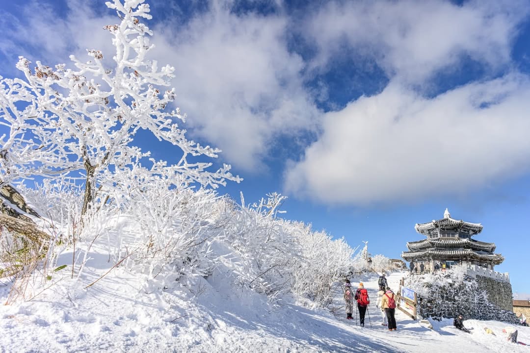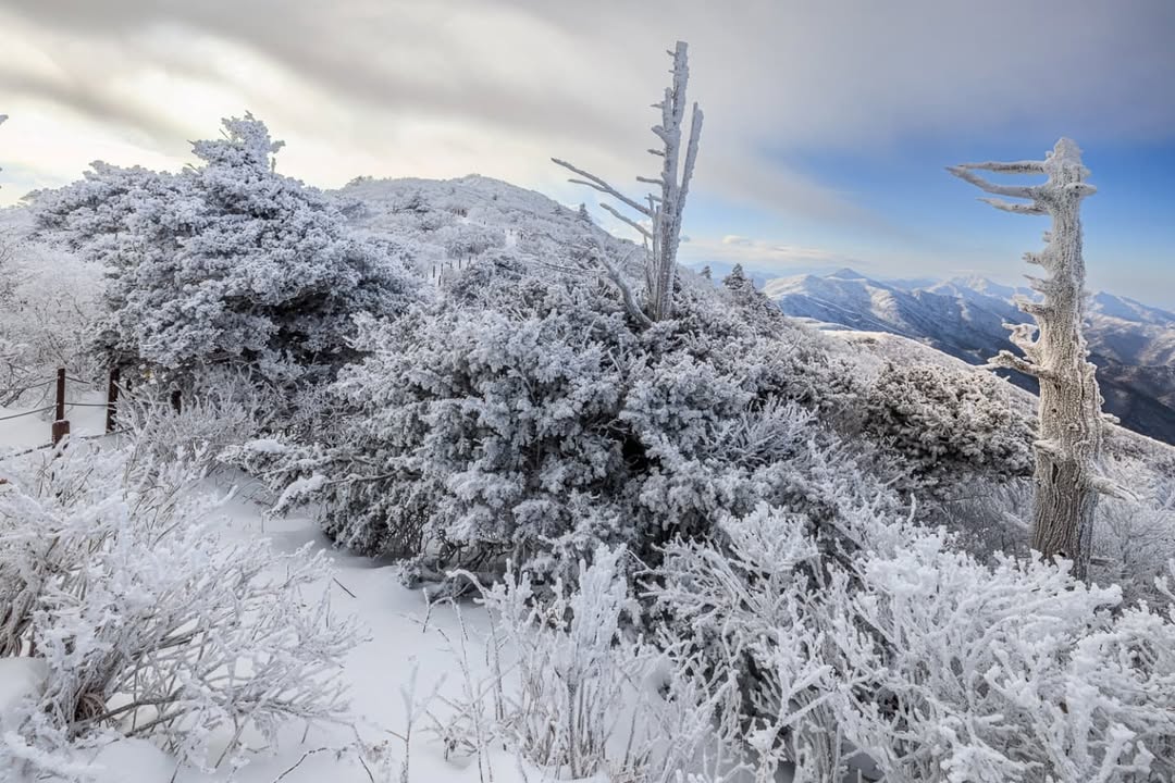 덕유산은 겨울 상고대 풍경으로 국내에서 손꼽히는 산입니다. 무주 덕유산 리조트의 곤돌라를 이용하면 설천봉까지 편하게 이동할 수 있어, 전문 산행이 어려운 여행자도 손쉽게 눈꽃 풍경을 감상할 수 있습니다.