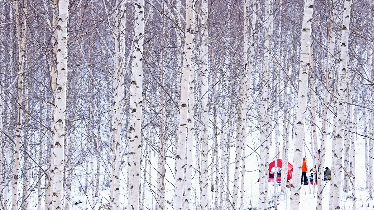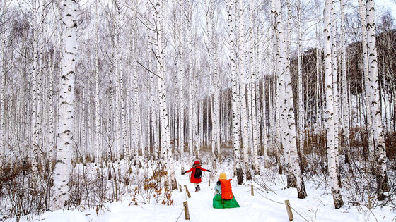 겨울 자작나무숲의 진가는 눈이 내렸을 때 비로소 드러납니다. 하얀 눈 위로 은빛 줄기가 곧게 뻗은 자작나무들이 줄지어 서 있는 모습은 현실감이 느껴지지 않을 만큼 몽환적인 분위기를 연출합니다.