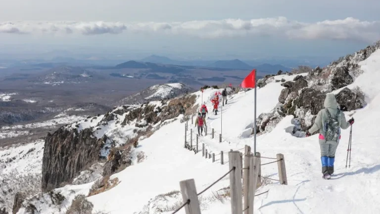 영실코스는 비교적 완만한 경사와 짧은 동선으로 구성되어 있어 겨울 산행 입문자도 부담 없이 도전할 수 있으며, 상고대가 형성된 날에는 제주에서만 볼 수 있는 독특한 눈꽃 풍경을 만날 수 있습니다. 다만 기상 변화가 매우 빠르기 때문에 사전 통제 여부 확인과 아이젠 등 기본 방한 장비 준비는 필수입니다.