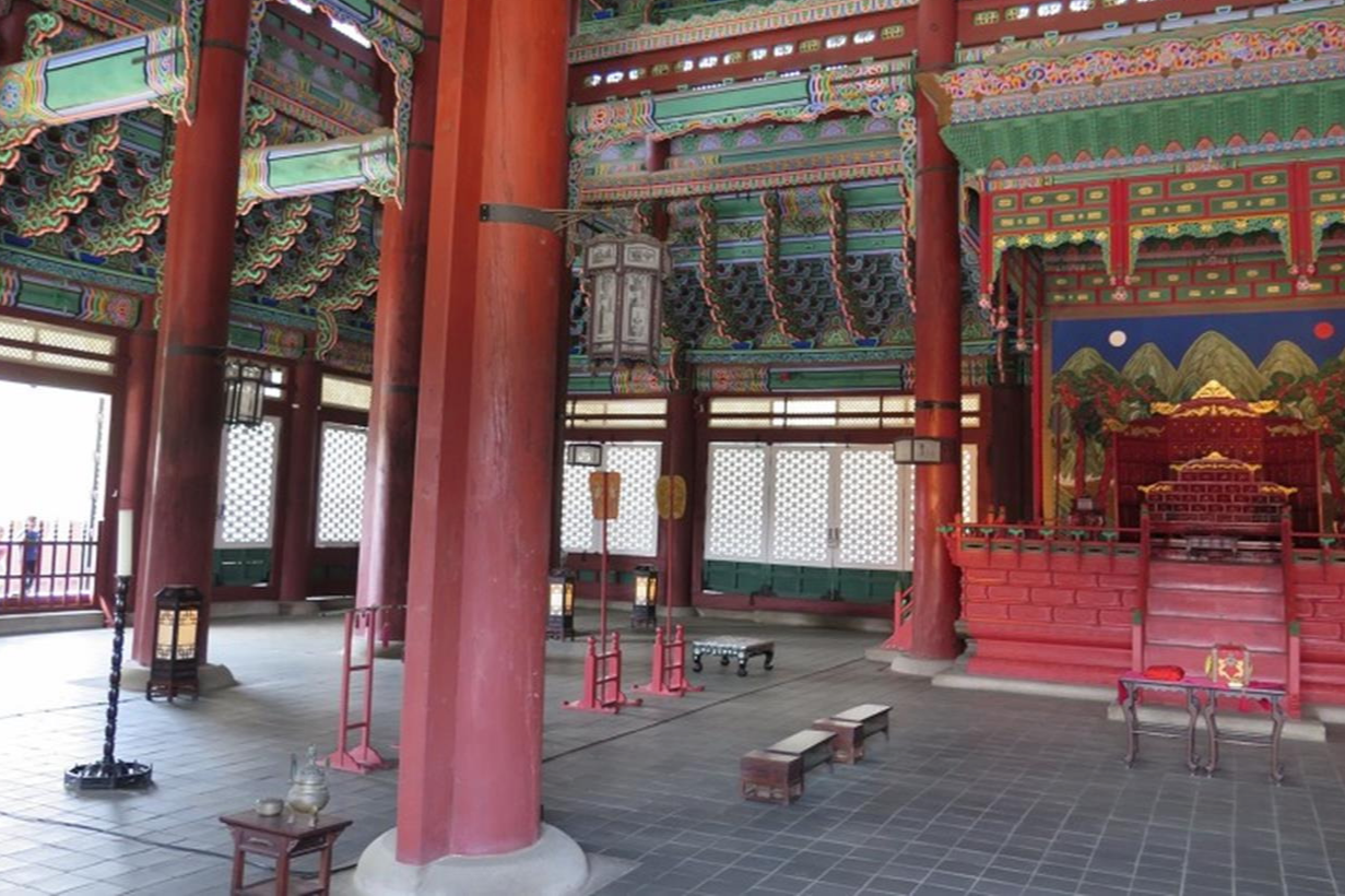 근정전은 조선 왕조의 공식 정무 공간이었습니다. 조선 왕은 이곳에서 신하들과 국정을 논의하고, 정기적인 의례를 거행했습니다. 전면의 넓은 마당과 단청의 화려함, 웅장한 기둥 배치는 왕권의 위엄을 강조합니다. 내부에는 단아하면서도 중후한 어좌(御座)가 놓여 있어, 최고 권력자의 자리가 어떻게 표현되었는지 확인할 수 있습니다.