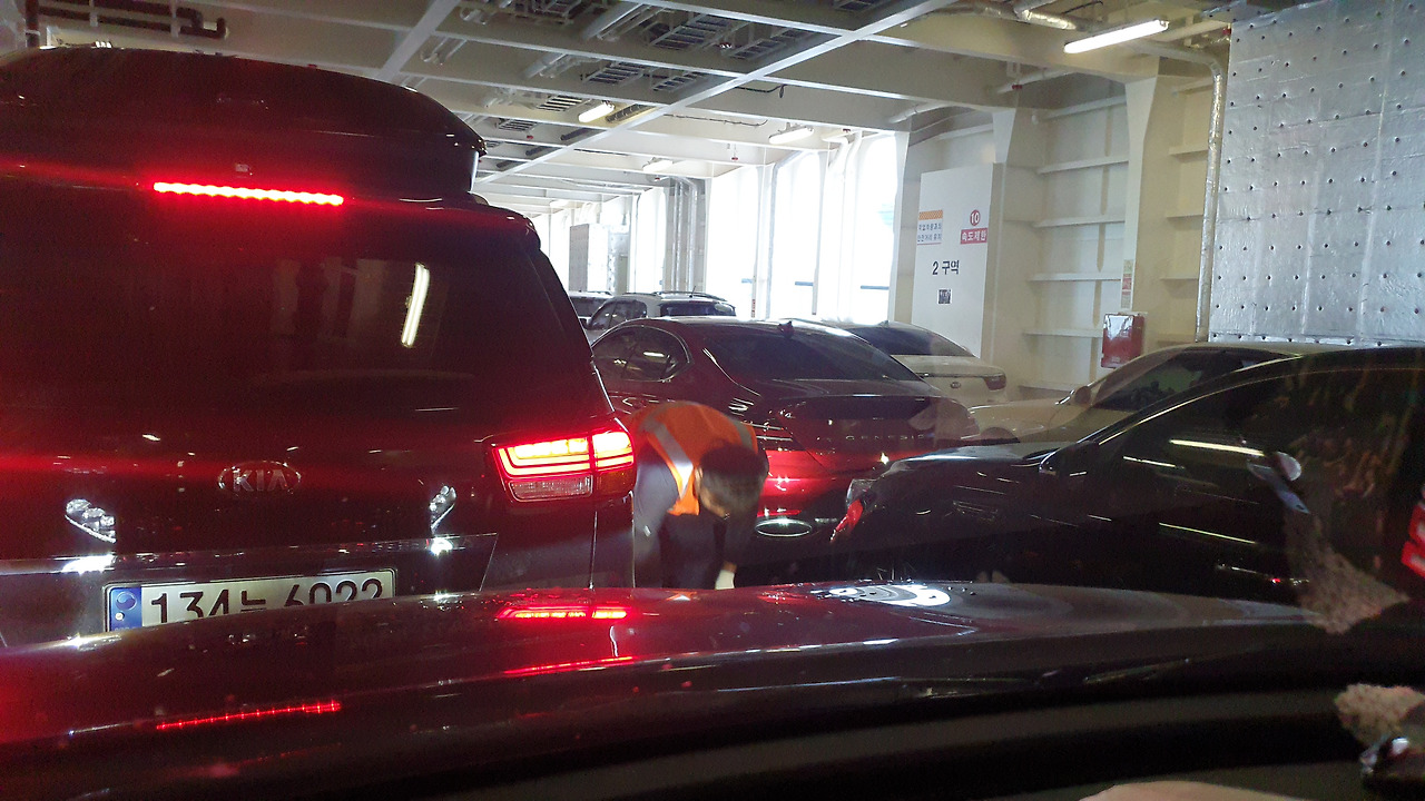 - 차량 내 탑승자 하선: 차량 입항 후 탑승객은 선실로 이동해야 하며 차량 안에 머무를 수 없습니다.