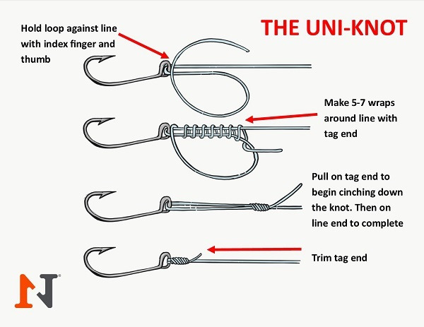 유니 노트는 단순하면서도 다양한 크기의 낚싯바늘과 목줄에 적용할 수 있는 매듭법입니다.