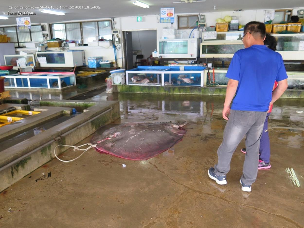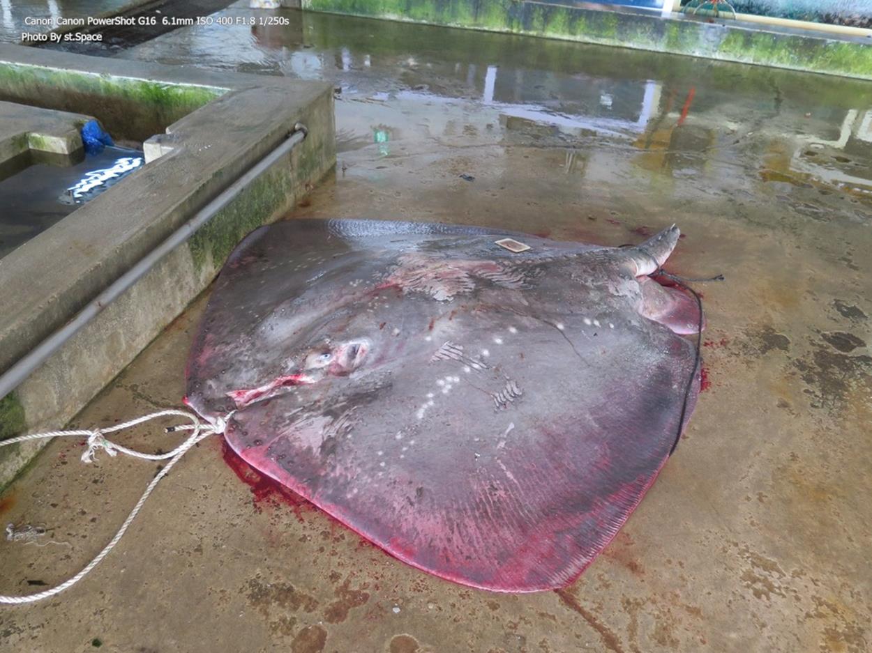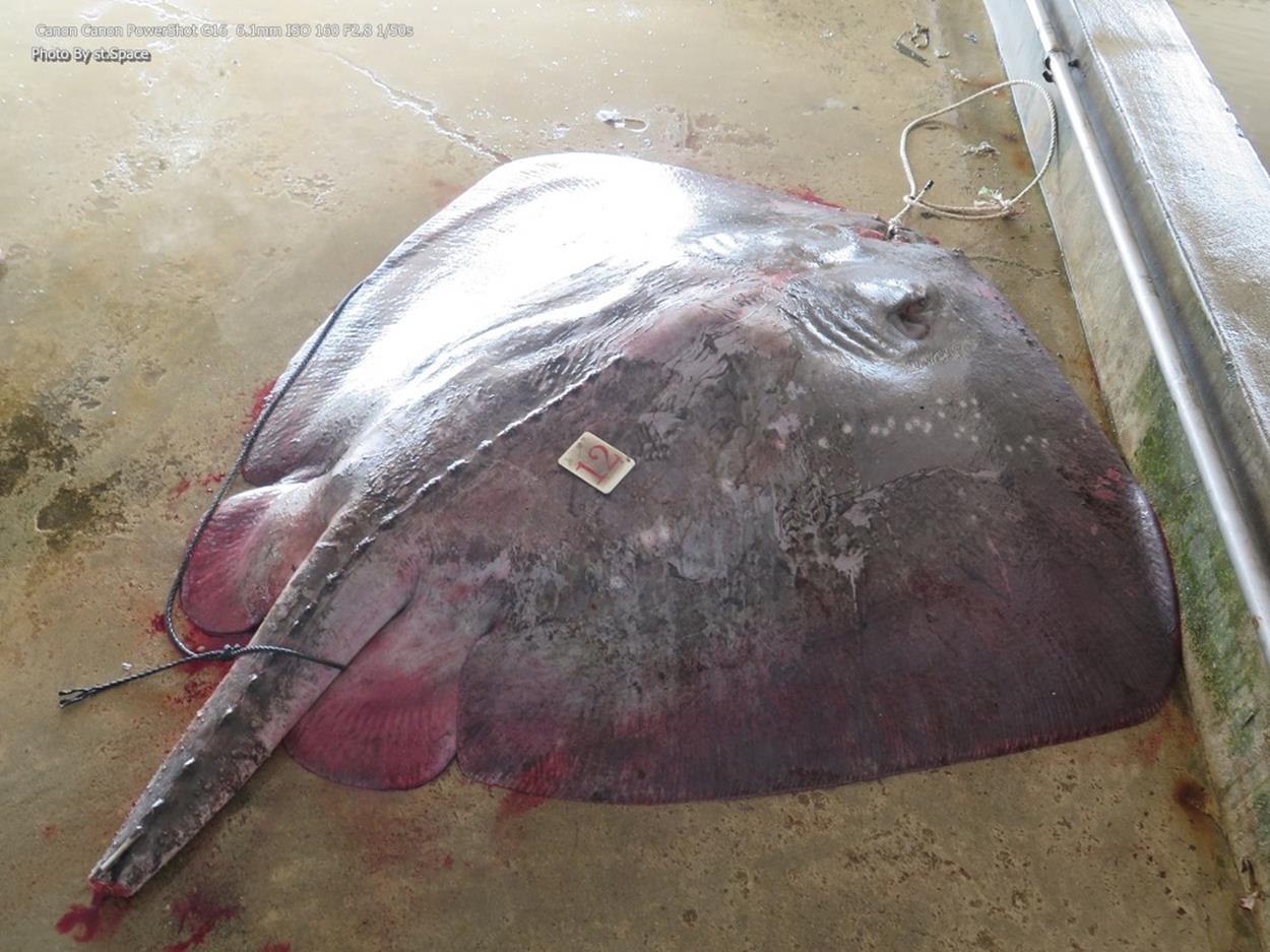 친구인 염사장이 호들갑을 떨길래 뭔가 했더니, 정말 깜짝 놀랄 크기의 가오리 한 마리가 꼬리가 잘린 채 놓여 있더군요.
