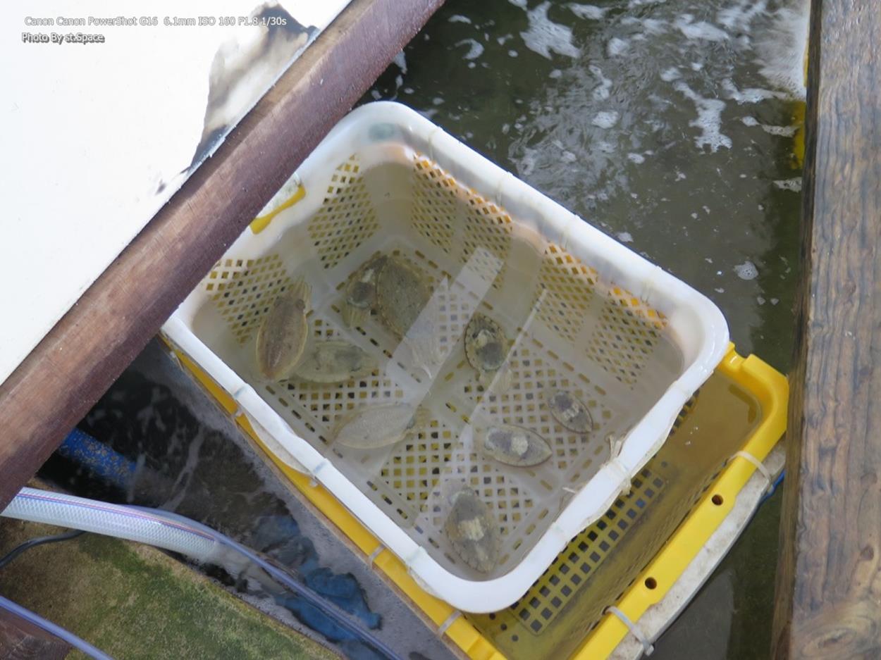 중도매인들의 수조가 보이고… 저 너머에 보이는 문 지나서 중도매인들이 소매로도 물건을 파는 가게들이 있더군요.