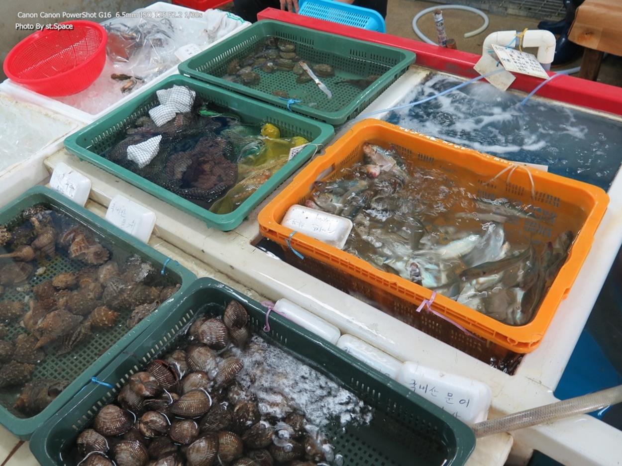 각종 신선한 해산물들이 팔리고 있더군요. 저희의 목표는 문어! 그리고 참돔!
