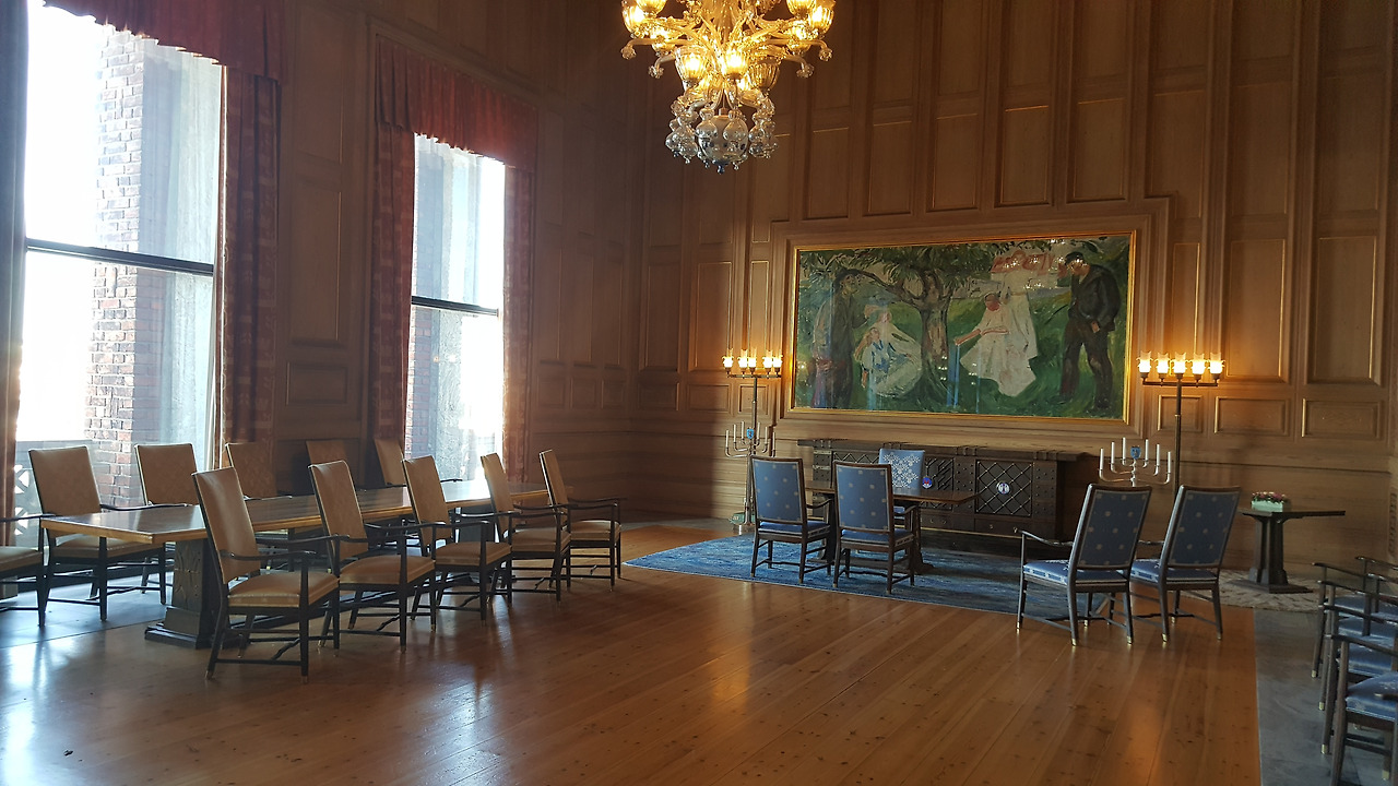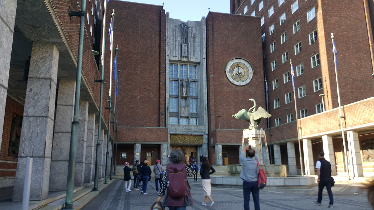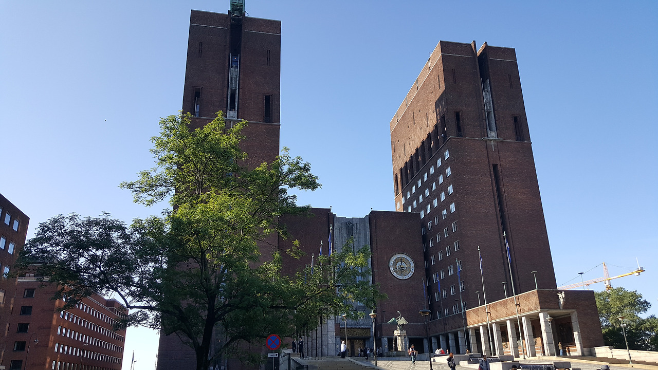 오슬로 시청사는 도시의 상징이자 노벨 평화상 시상식이 열리는 장소로 유명합니다. 이 건물은 오슬로 시 창립 900주년을 기념해 1931년에 착공되었으나, 제2차 세계대전으로 인해 1950년에 완공되었습니다. 건물의 외벽과 내부는 노르웨이 대표 예술가들의 그림과 조각으로 장식되어 있습니다.