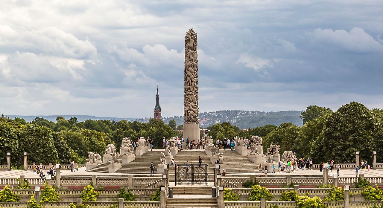 공원의 중심부에는 인간의 삶과 감정을 주제로 한 대작 “모노리트”가 서 있으며, 이는 17.3m 높이의 화강암 기둥에 121명의 인간 형상이 새겨진 작품입니다.