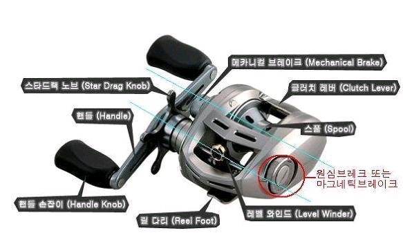 - 메카니컬 브레이크 (Mechanical Brake): 스풀이 풀리는 속도를 제어합니다. 조일수록 스풀이 느리게 풀립니다.