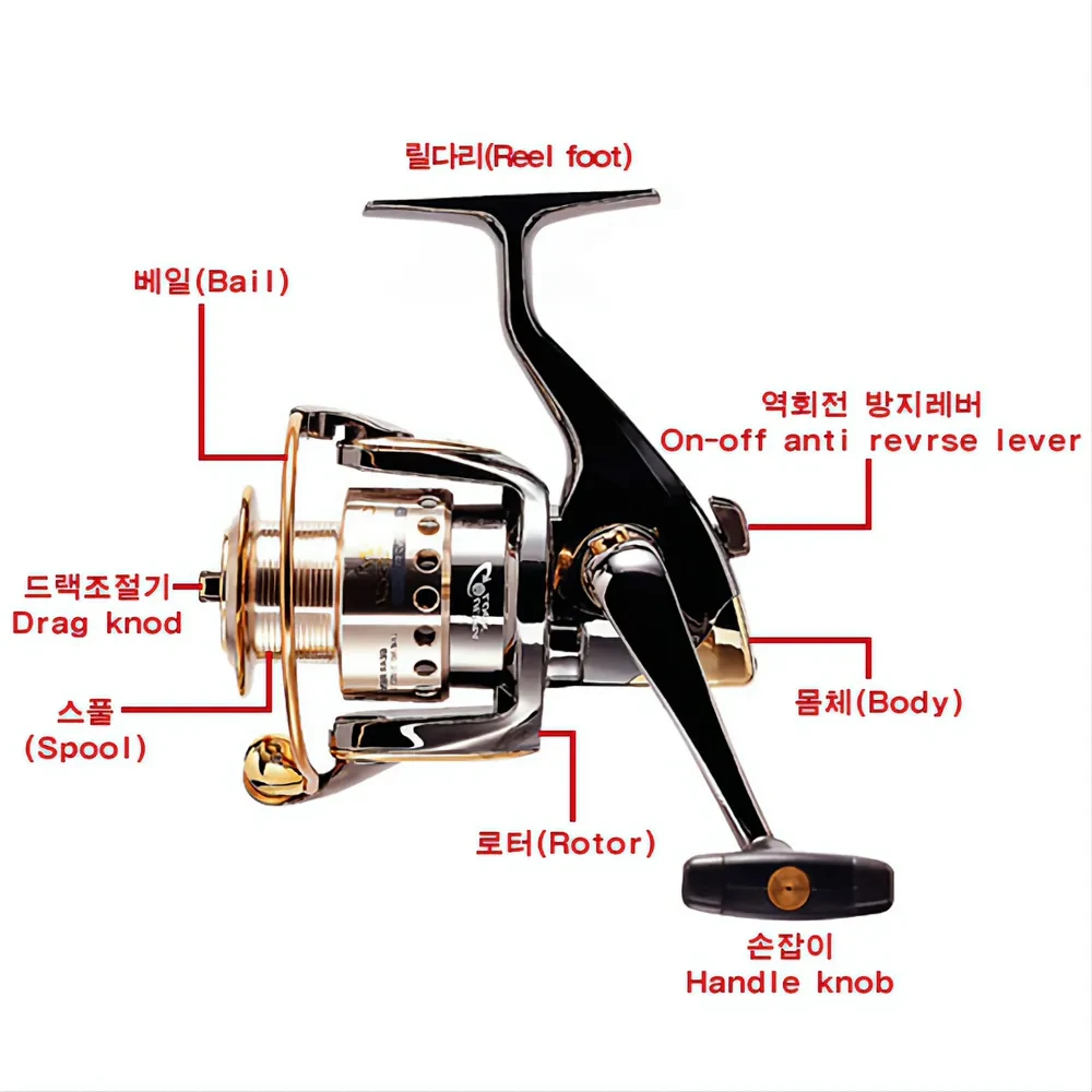 - 드랙 (Drag): 강제력에 의해 스풀이 풀리는 정도를 조절하는 장치입니다. 드랙을 조일수록 스풀이 덜 풀리며, 풀림의 강도를 조절할 수 있습니다.