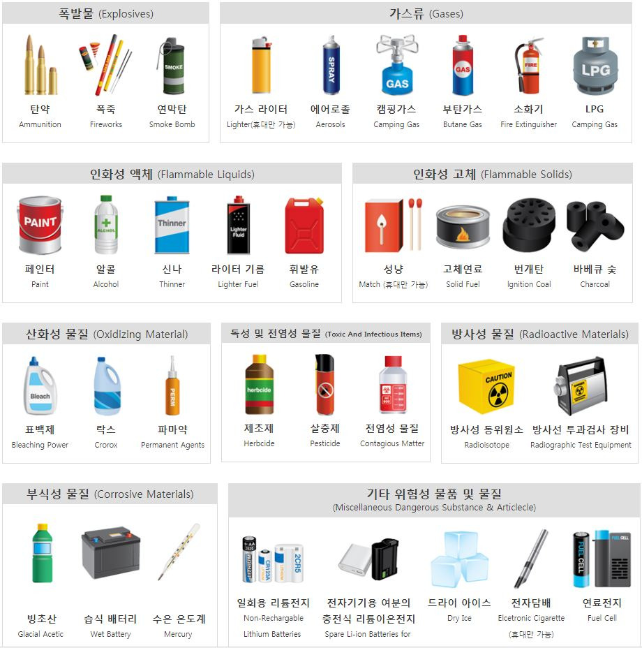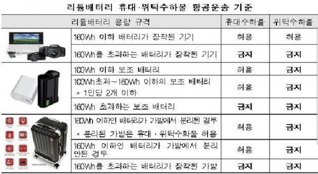 비행기 탑승 시 금지 물품: 보조 배터리, 건전지, 화장품 항공기 수하물 반입 금지