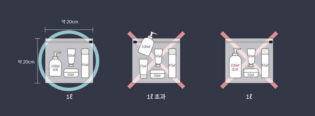 액체 화장품은 보통 100ml 이하의 용량으로 제한되며, 투명한 지퍼백에 담아야 합니다. 이 지퍼백의 총 용량은 1리터를 초과하지 않아야 하며, 각 화장품 용기는 100ml 이하이어야 합니다. 또한, 기내 반입 시 보안 검색대에서 별도로 제시해야 하며, 체크인 수하물로는 용량에 관계없이 포함될 수 있습니다. 크림, 젤, 오일 등 비액체 화장품은 일반적으로 수하물로 가져갈 수 있지만, 수량에 따라 규제가 있을 수 있습니다.