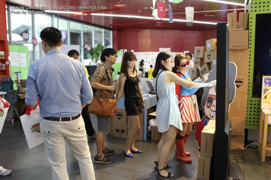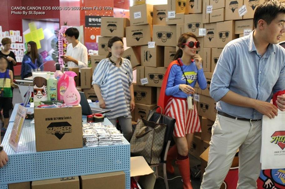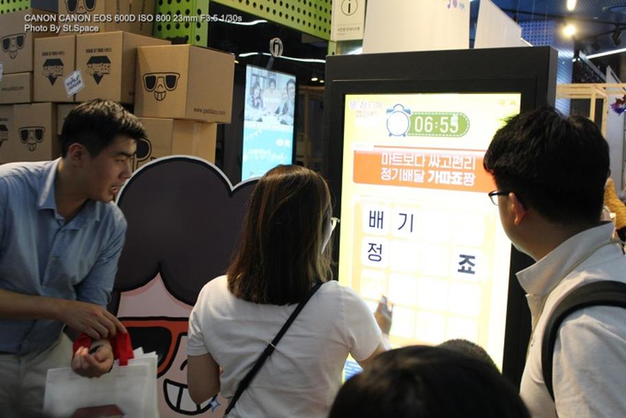 가따죠 부스의 간판(?) 조차도 밋밋한 것보다 톡톡 튀어 보였는데요. 이날 마켓 히든 행사에서 토크콘서트를 진행했던 배달의 민족 앱을 만든 우아한 형제들의 김봉진 대표님의 강연의 주된 내용이 재미와 아이디어였는데, 가따죠도 그에 못지않게 뭔가 유쾌한 집단 같더군요.