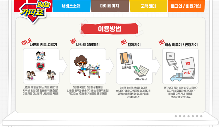그럴 때 바로 이 가따죠 서비스가 정기적으로 생필품을 집으로 배달해 준다는 건데요.