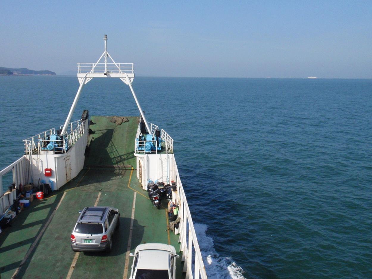 아침에 방아머리 선착장에서 배를 타고 이작도로 넘어가는 배편은 카페리라 차를 배에 싣고 넘어갈 수 있다.