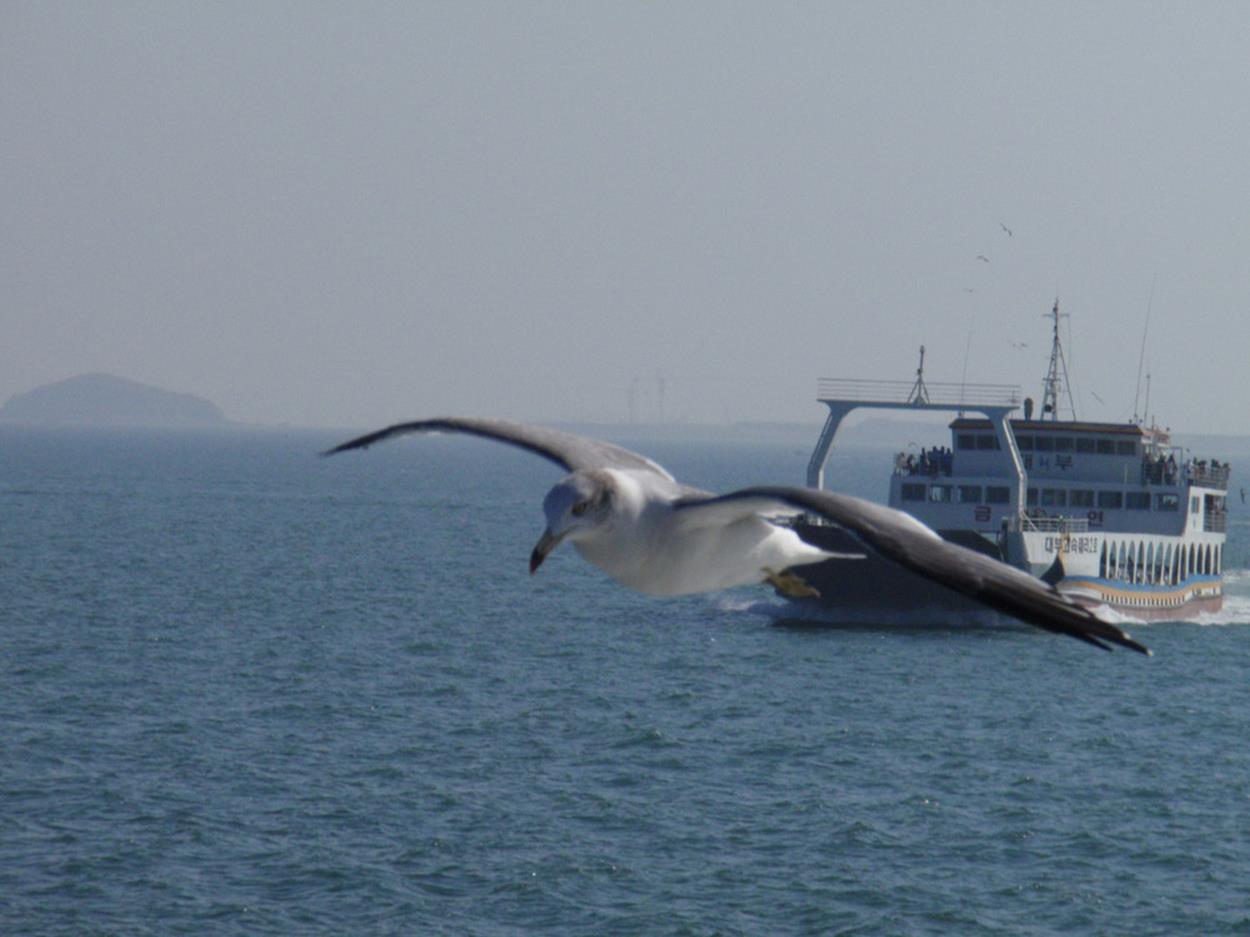 차를 이작도행 배편에 싣고 갑판에 올라서면 몰려드는 갈매기들에게 새우깡을 던져주면 기가 막히게 잘 받아먹는다.