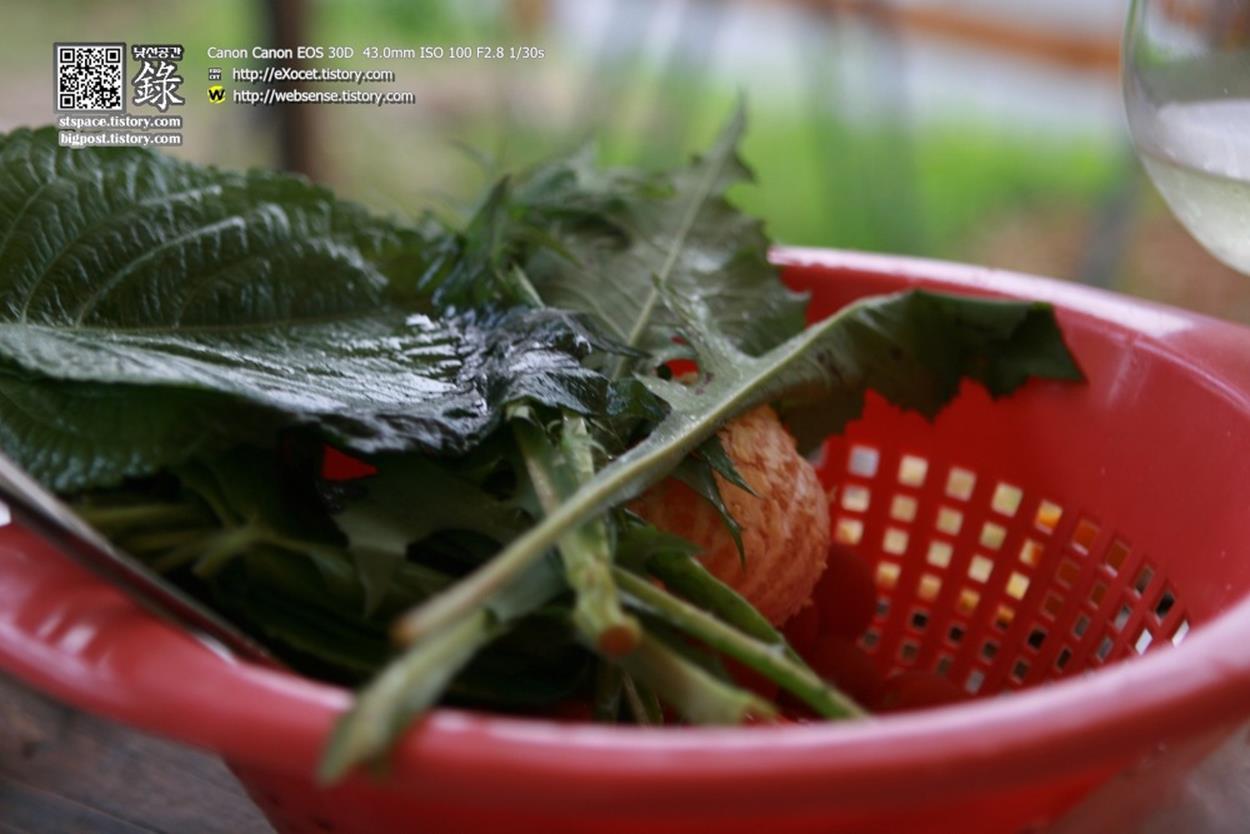 펜션 사장님이 펜션 주변에서 직접 따서 씻어다 주셨던 쌈채소들.