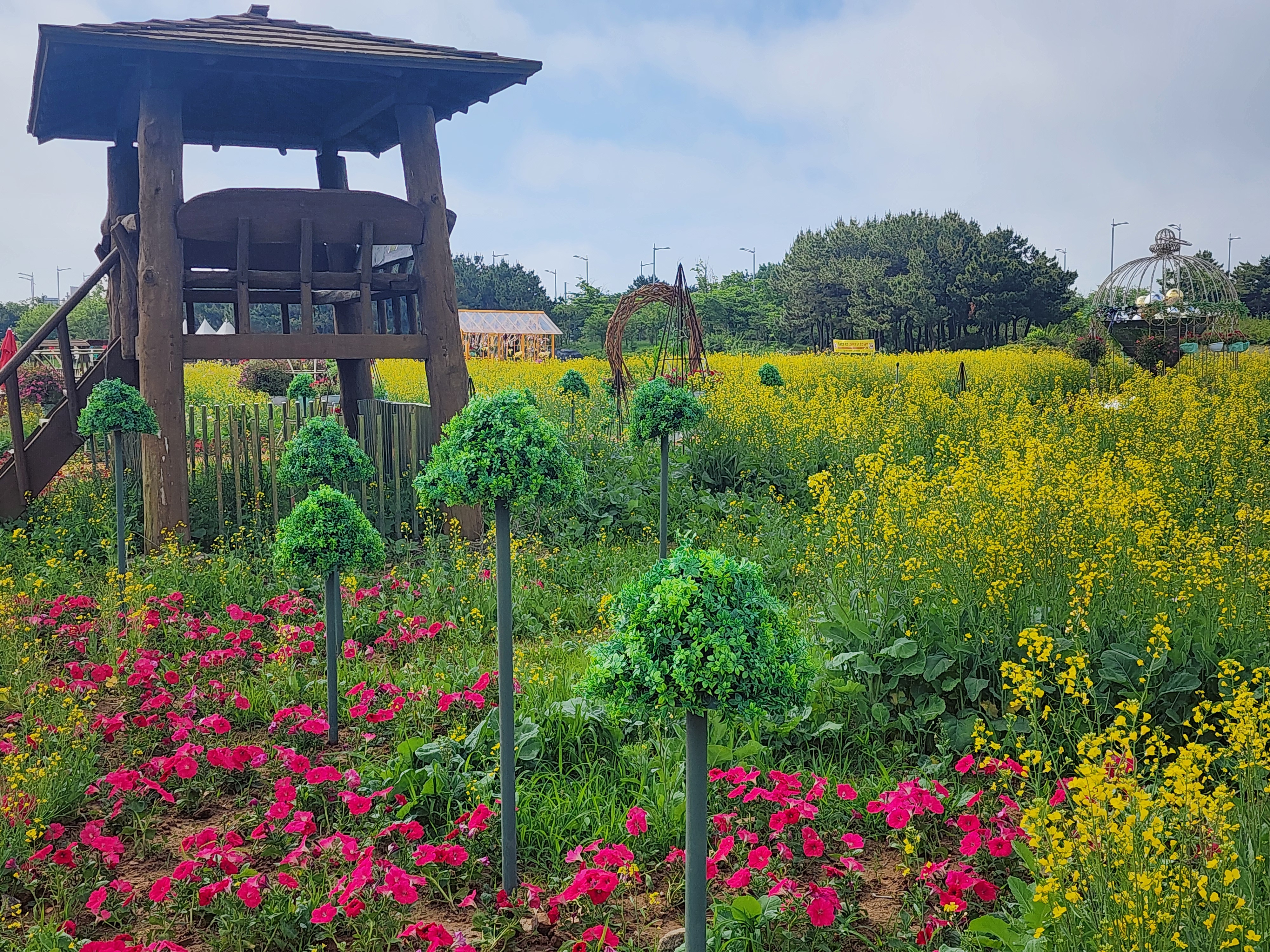 - 유채꽃밭: 화려한 유채꽃이 만개한 대규모 꽃밭