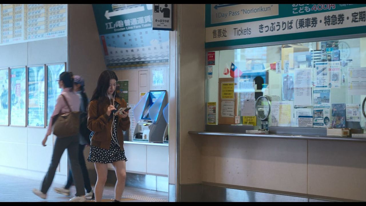 고쿠라쿠지 역은 작은 역 특유의 아날로그 감성이 있어서, 말보다 분위기가 앞서는 장면에 특히 잘 맞습니다. 통역사라는 직업이 말의 전문가인 만큼, 역설적으로 “말이 필요 없는 장면”이 중요한데, 이런 공간은 그 역할을 해냅니다.