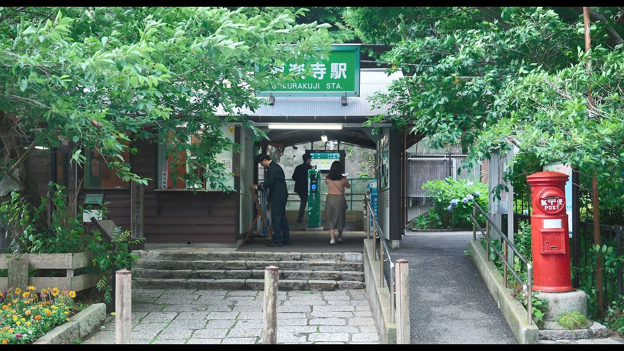 고쿠라쿠지 역은 작은 역 특유의 아날로그 감성이 있어서, 말보다 분위기가 앞서는 장면에 특히 잘 맞습니다. 통역사라는 직업이 말의 전문가인 만큼, 역설적으로 “말이 필요 없는 장면”이 중요한데, 이런 공간은 그 역할을 해냅니다.