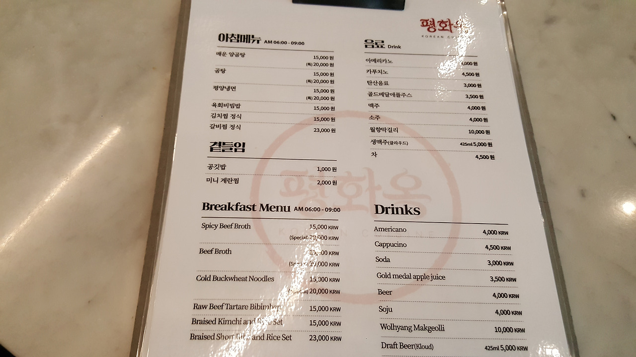 공항 내부를 걷다 보면 D카운터 근처, 모던한 인테리어와 함께 세련된 입구의 ‘평화옥’ 간판이 눈에 띕니다. 외관은 깔끔하면서도 전통적인 한식당의 품격을 살려 차분한 분위기를 자아내며, 내부에는 조용히 식사를 즐기는 승객들이 여유롭게 자리를 채우고 있었습니다.