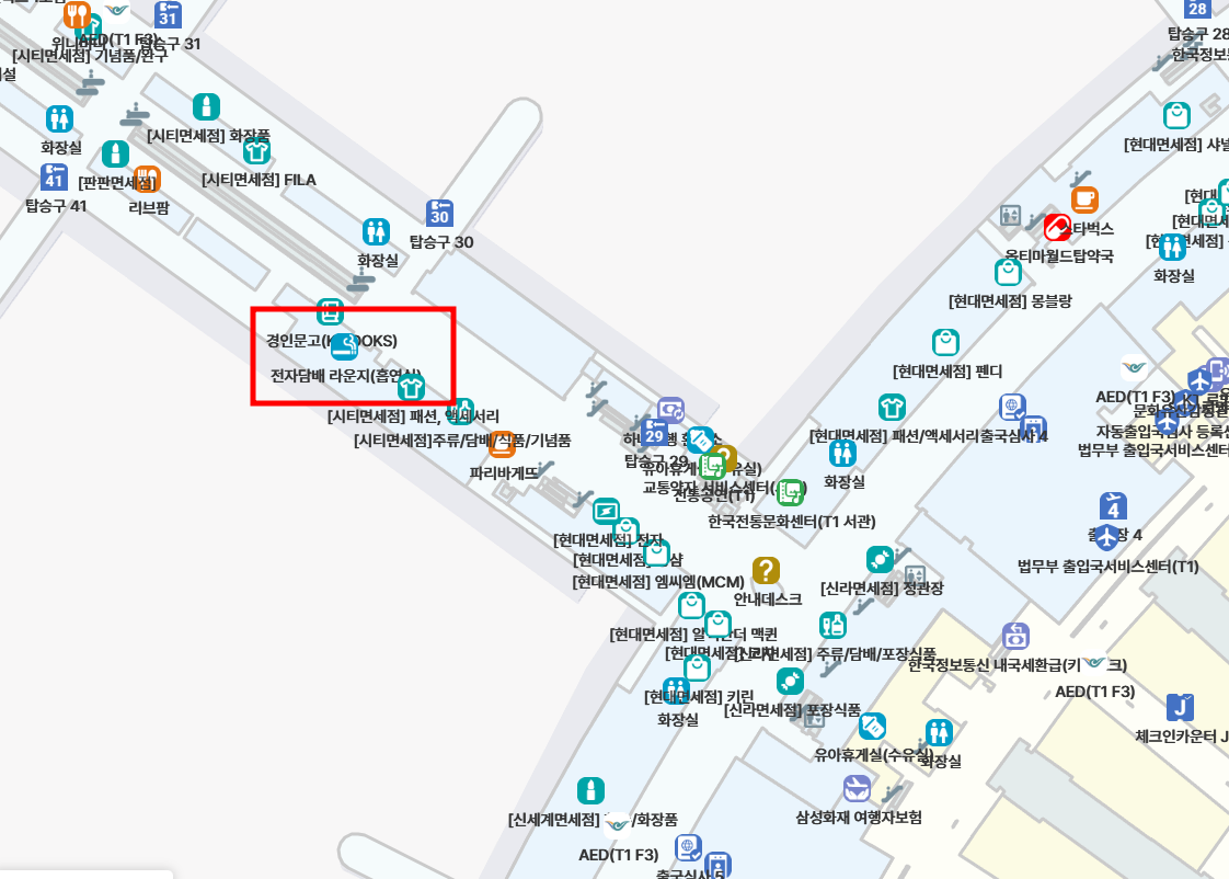 - 제1여객터미널: 30번 탑승구 앞에 전자담배 전용 흡연실 위치