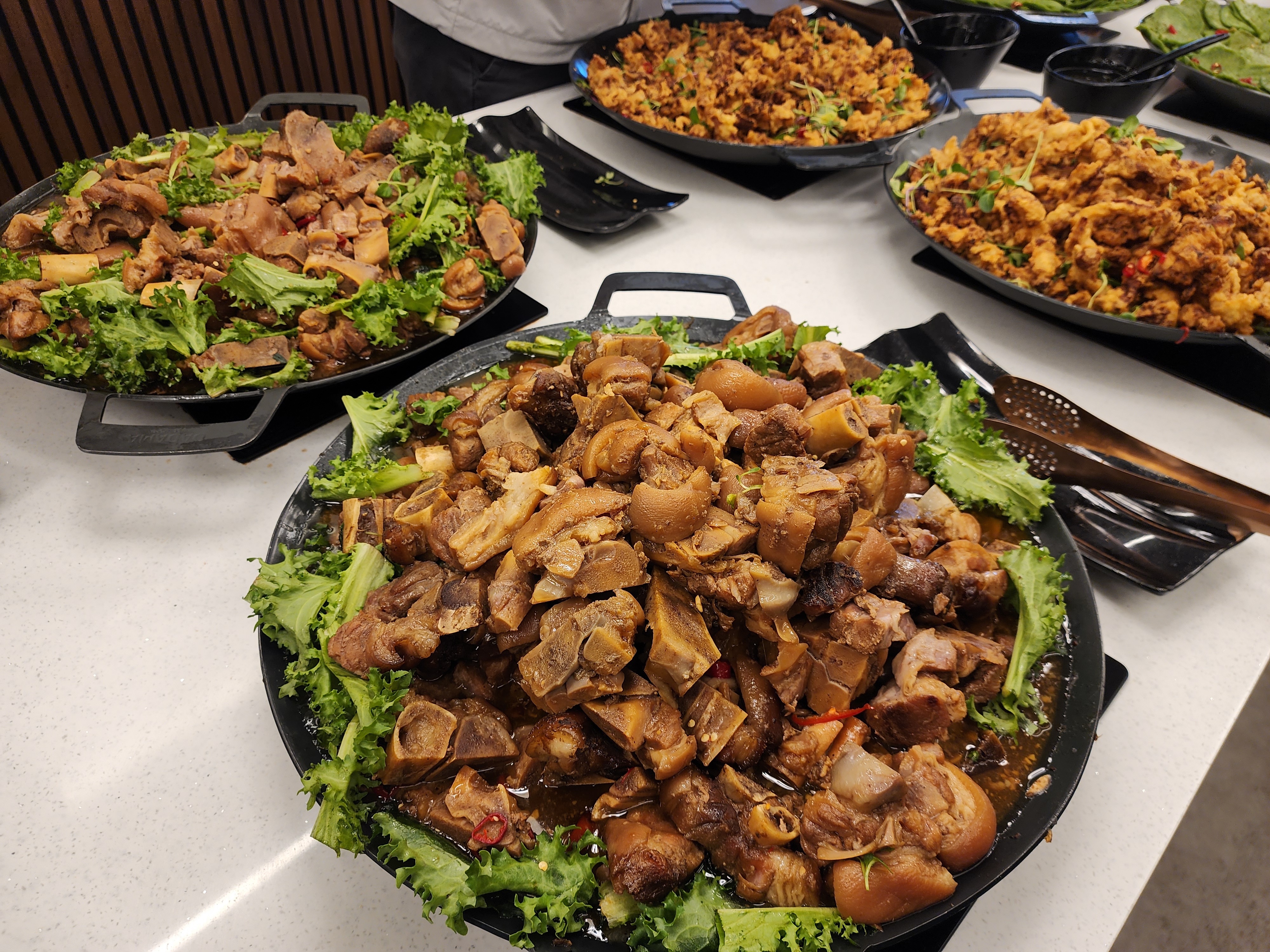 제가 방문한 날의 메뉴는 소고기미역국, 간장미니족발, 수제탕수육, 부추전, 도라지유자청, 후랑크소세지볶음, 오이무침, 옥수수콘샐러드, 바람떡, 열무김치, 배추김치, 그리고 셀프라면이었습니다. 간장미니족발은 개인적으로 만족스럽지 않았지만, 라면이 무제한으로 제공되는 점은 만족스러웠습니다. 대가에서는 음료로 매실차를 무제한 제공하고 있습니다.