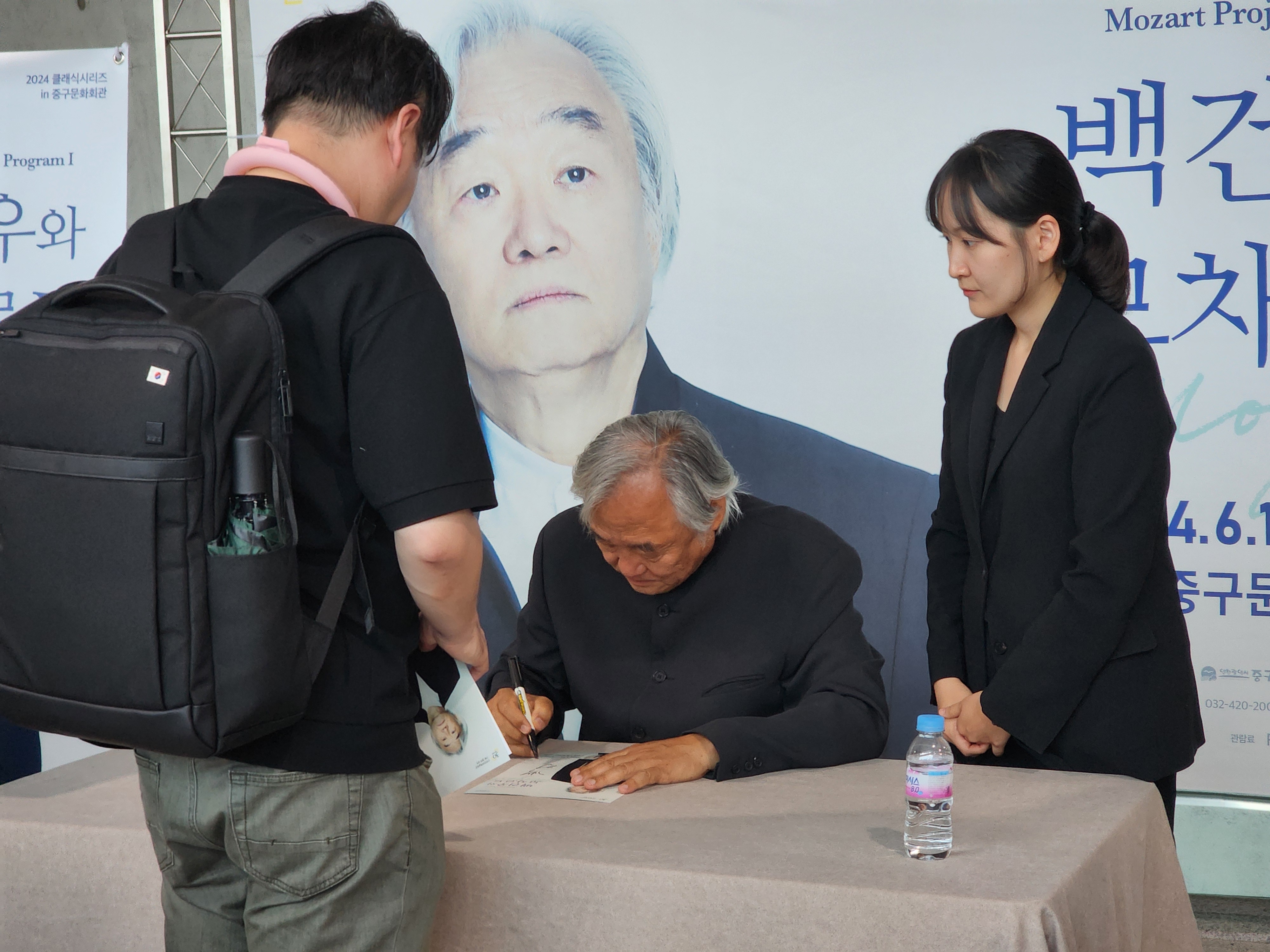 공연 후에는 사인회도 진행되었습니다. 백건우 피아니스트의 사인을 받을 수 있는 특별한 기회가 주어졌습니다. 저도 사인을 받는 행운을 누렸습니다.