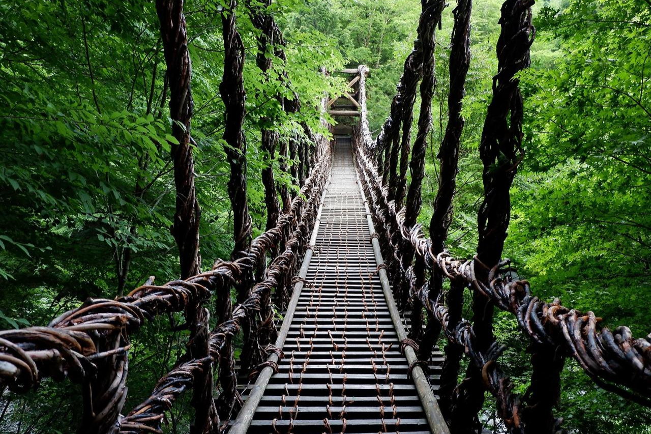 소야의 카즈라바시는 일본 3대 기이한 다리 중 하나로, 주변이 잘 정비되어 있지만 예전에는 접근하기 어려운 ‘비경’이었습니다. 풍부한 녹지와 소야 강의 경치는 사진 찍기에도 완벽합니다.
