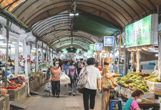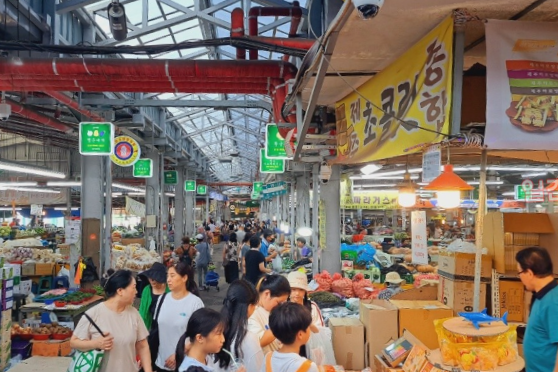 생활용품과 제주 장인들이 만든 독특한 기념품을 구매할 수 있습니다. 제주 고유의 문양과 재료가 담긴 제품들이 여행의 특별한 추억을 만들어줍니다. - 전통시장 특유의 활기