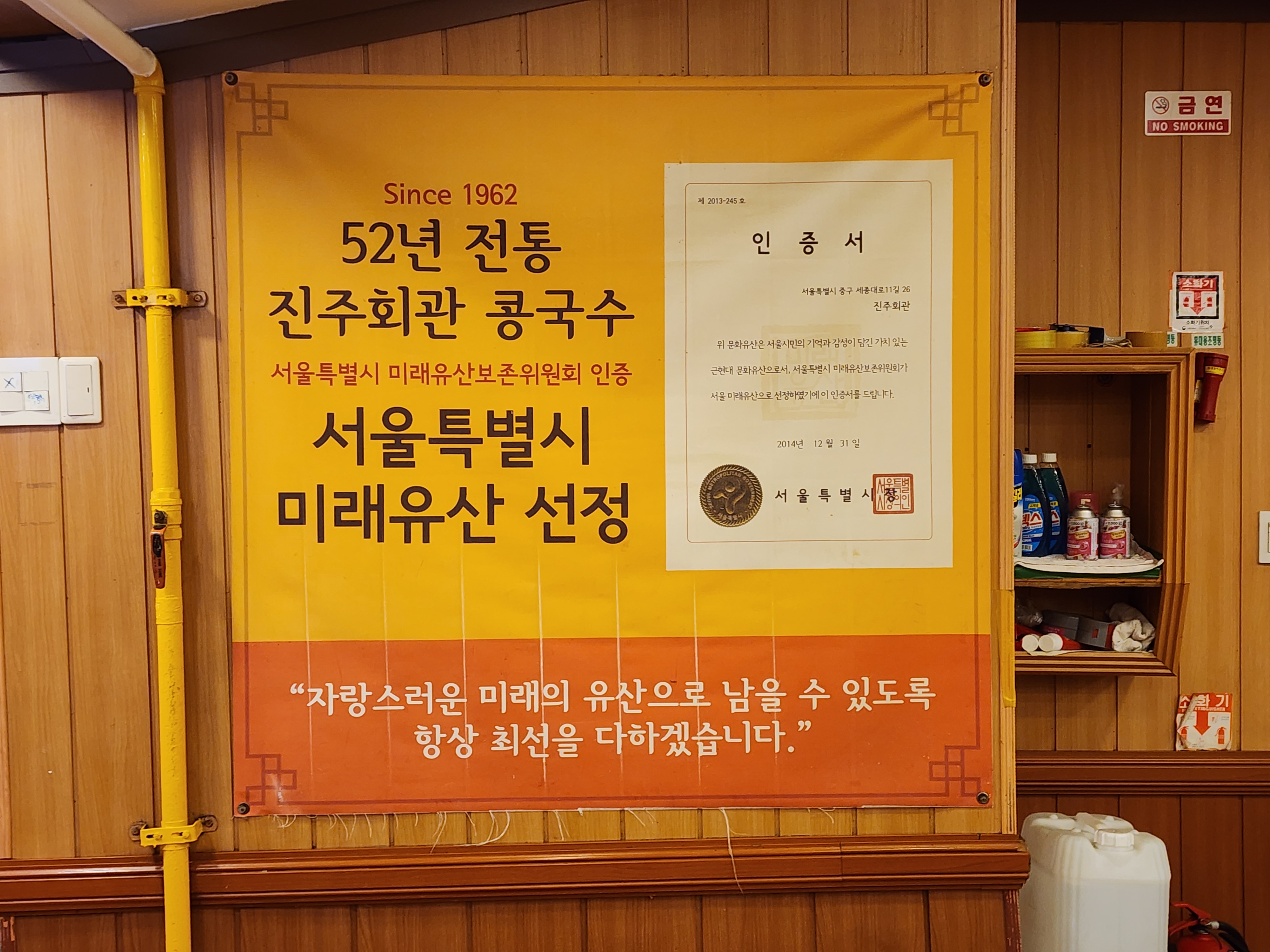 서울특별시 미래유산 선정 인증서는 있더군요. 관공서는 절대 맛으로 맛집 선정을 하지 않아요. 신뢰성이 제로. 맛없어도 52년쯤의 노포면 주는 인증서일 뿐. 게다가 공무원들 하는 짓거리를 보면, 결코 신뢰할 수 없죠.