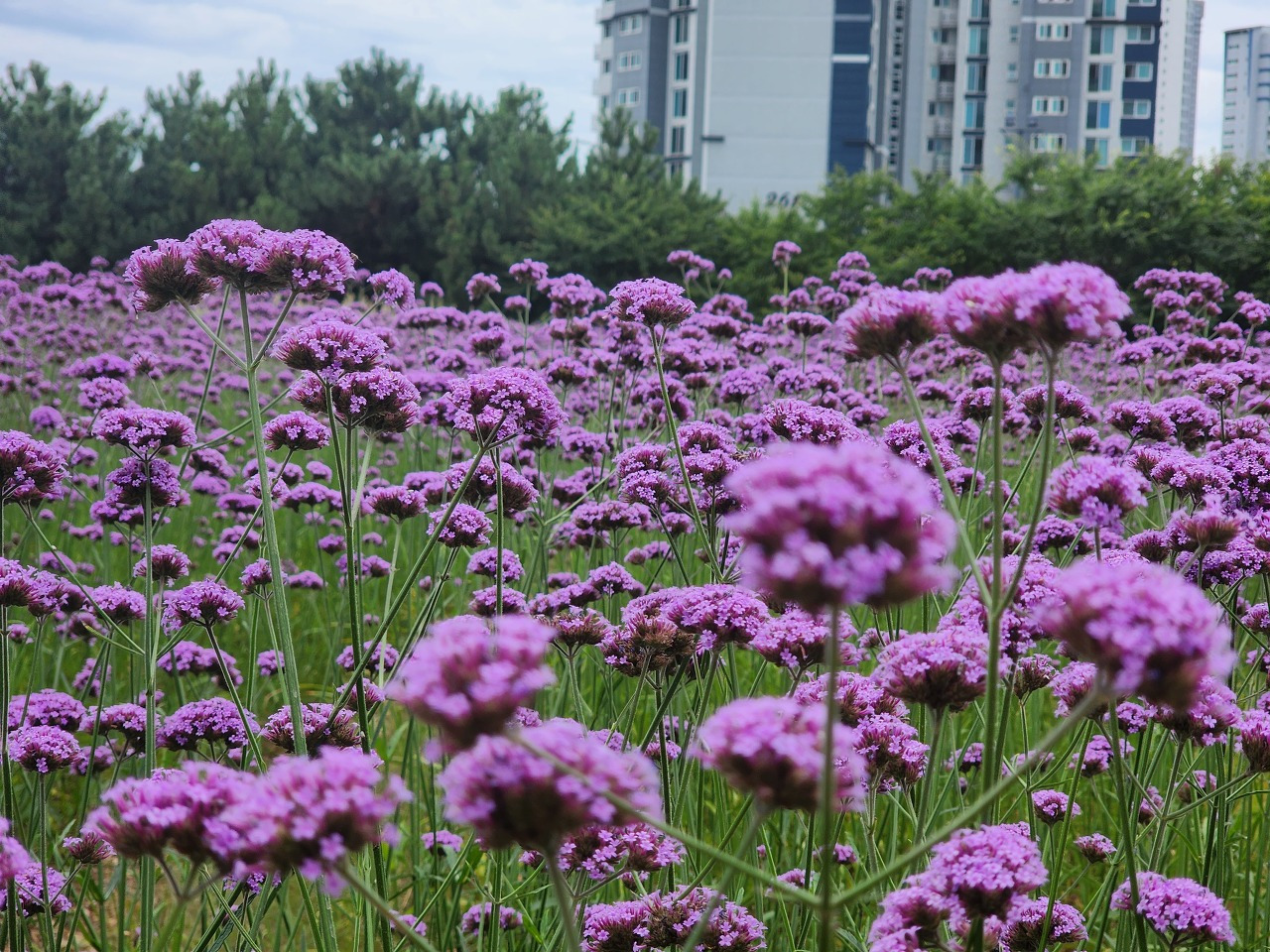 연희공원의 버베나 꽃밭: 화려한 풍경 속 산책