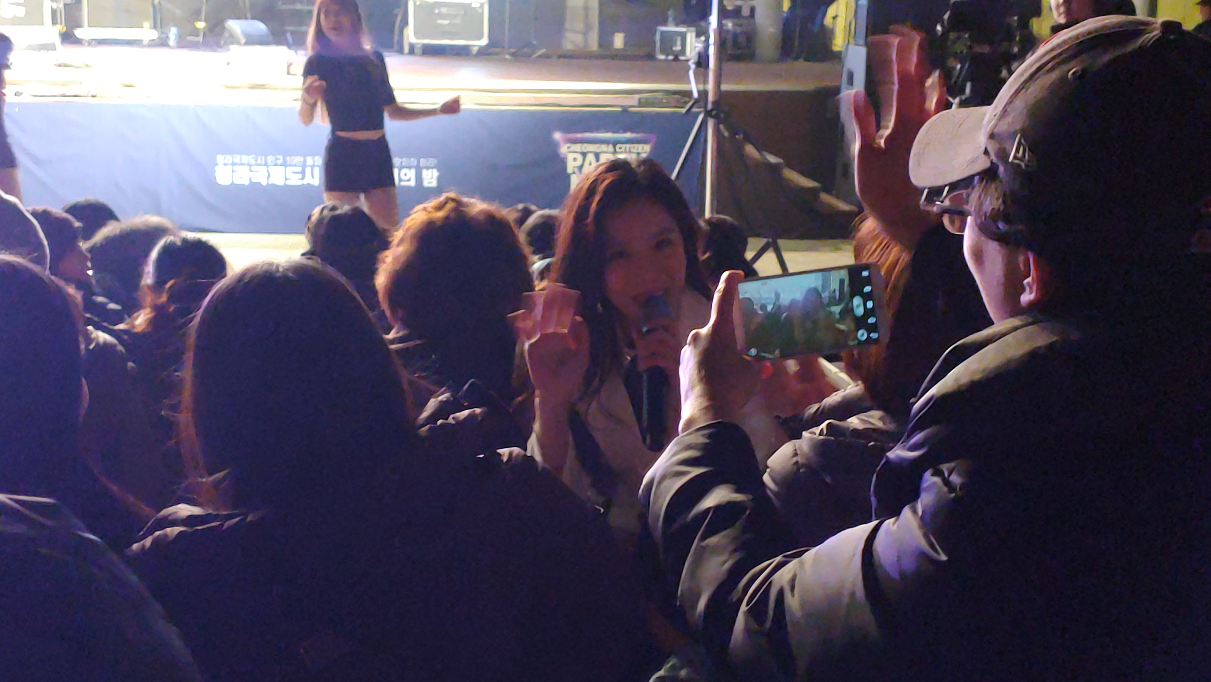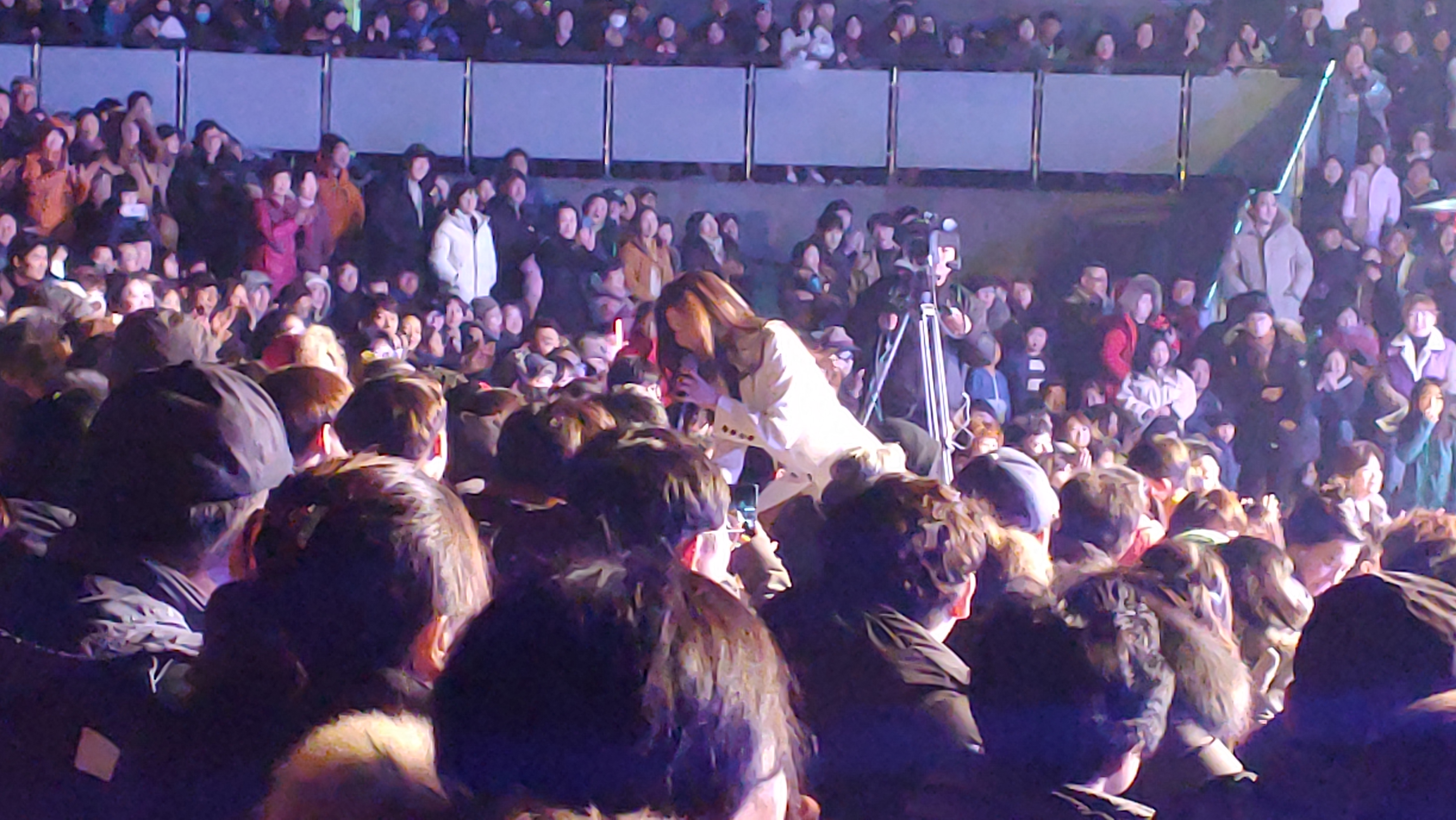 객석에 난입해서 일일이 악수도 하는 무대 매너!