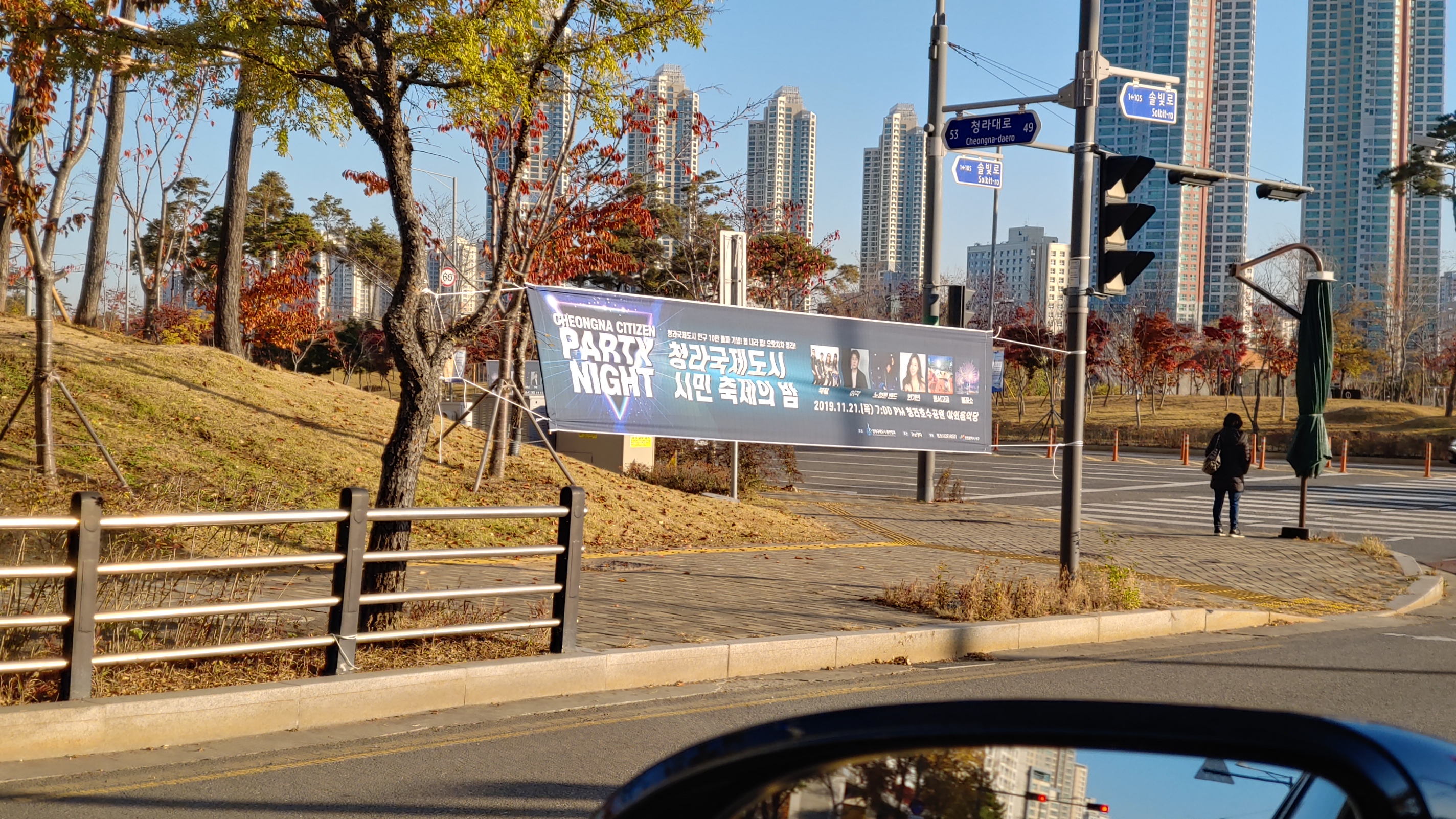 수요일 아침에 출근길에 플랭 카드가 붙어 있다.