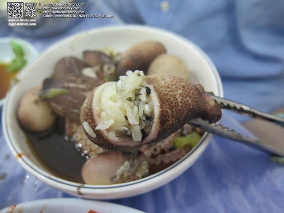 오징어순대처럼 찹쌀로 만든 쭈꾸미 순대 같다.