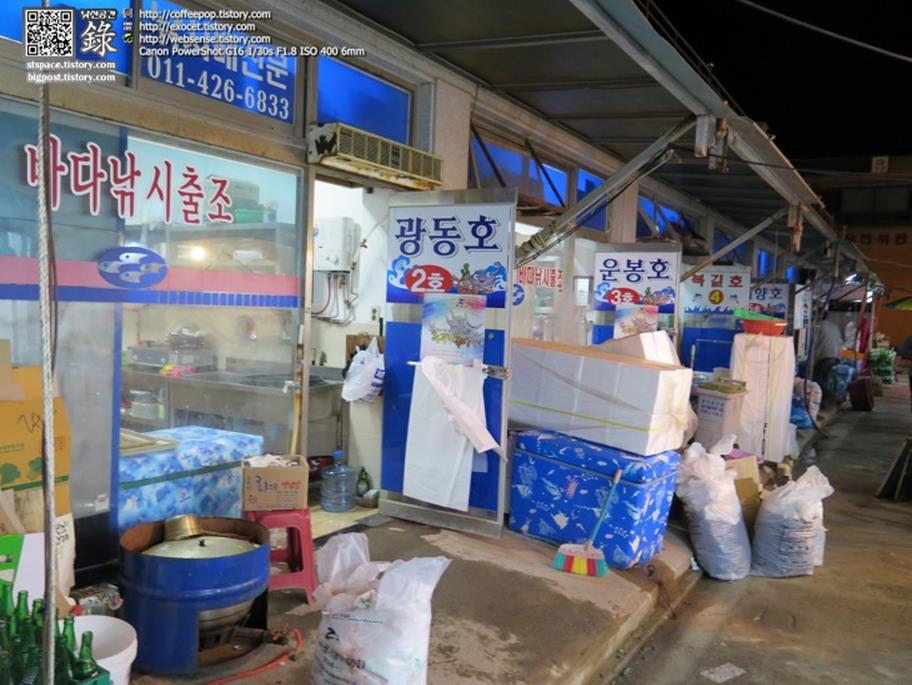 천막 식당에서 불쾌한 경험을 하고, 다시 어판장으로 와서 2호 집인 광동호에 조심스레 쭈꾸미 샤부샤부 되냐고 불쌍하게 물으니, 되신단다. 그 사이에 소량의 주꾸미를 좀 얻어 오신 모양이시다.