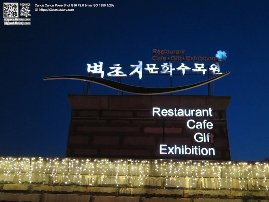 파주 벽초지 문화 수목원 빛 축제장 내에는 식당이 두 군데가 있는데, 첫번째 식당은 고기구워 먹는 곳다.