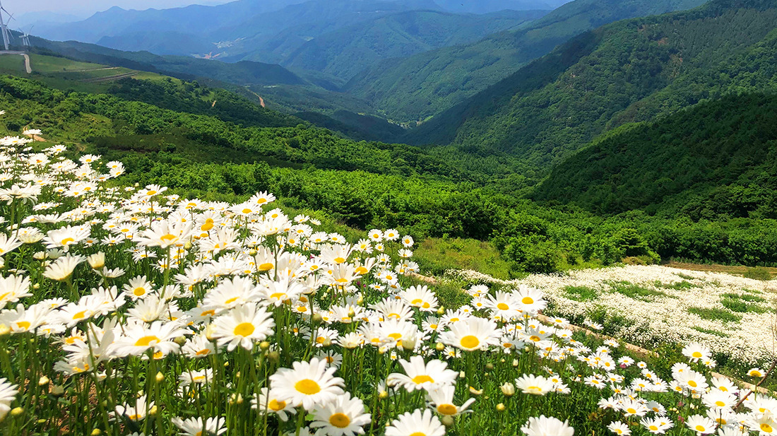 - 봄: 샤스타데이지가 만발하여 ‘천상의 화원’ 같은 풍경이 펼쳐집니다. 흰 꽃과 푸른 초원의 조화가 인상적입니다.