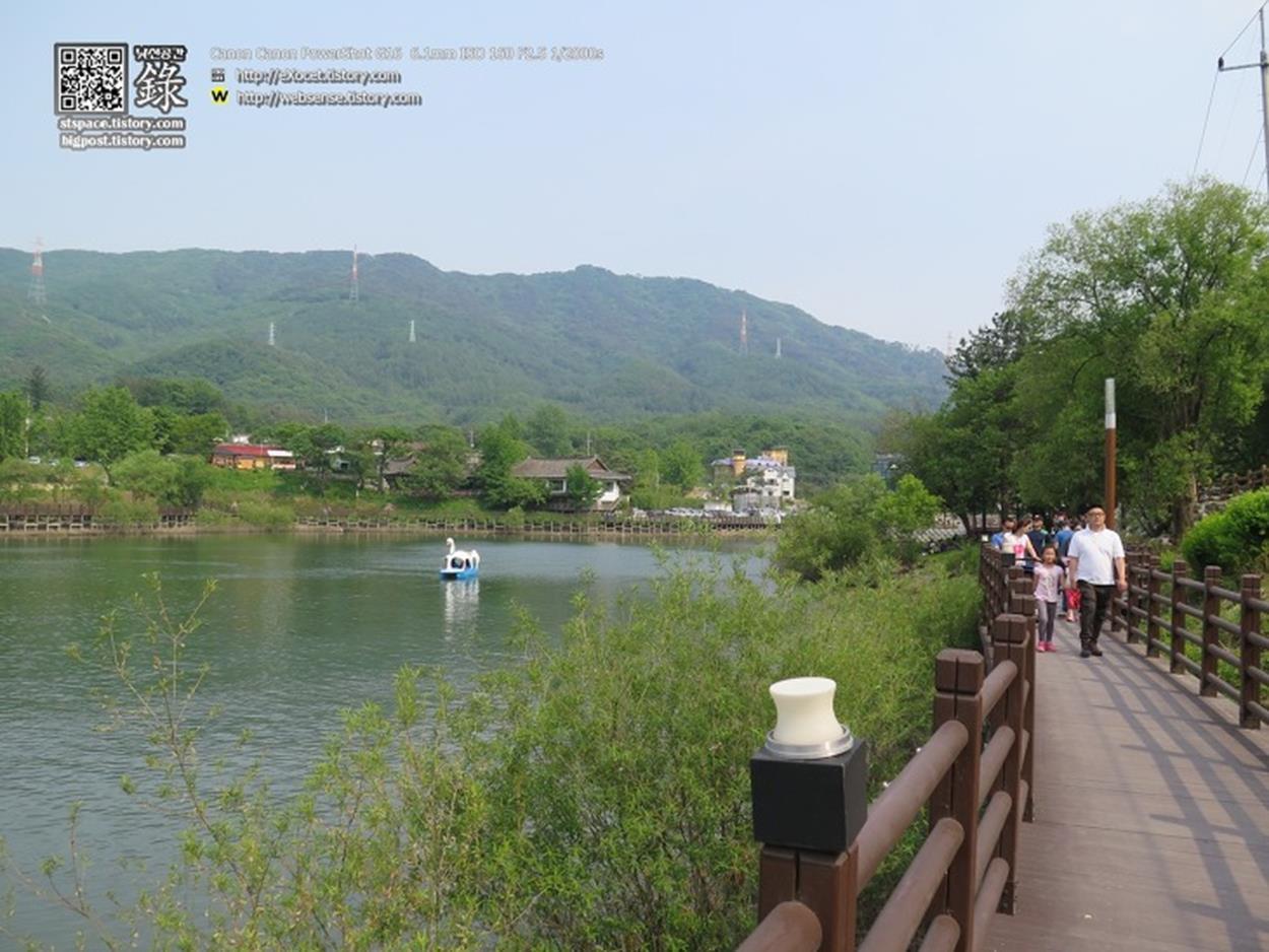저수지에 도착하면, 고모리저수지 둘레길을 걸으며 풍경을 감상할 수 있습니다. 전체 길이가 2.6km로, 호수 한 바퀴를 돌며 자연의 아름다움을 만끽할 수 있는 코스입니다. 이 길을 천천히 걸으면 한 시간 조금 넘게 소요되며, 중간 중간 쉴 수 있는 공간도 마련되어 있죠. 고모호수공원이라고도 불리는 이 곳은 죽엽산을 중심으로 한 아름다운 자연 풍경을 자랑합니다.