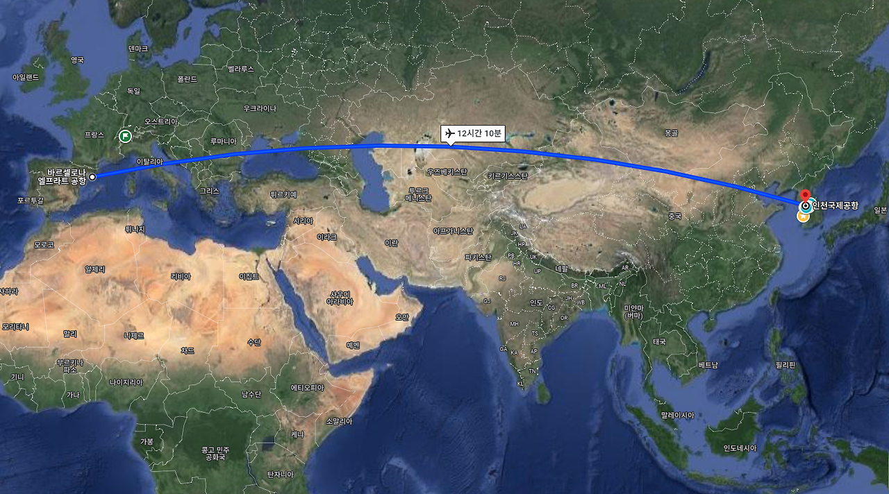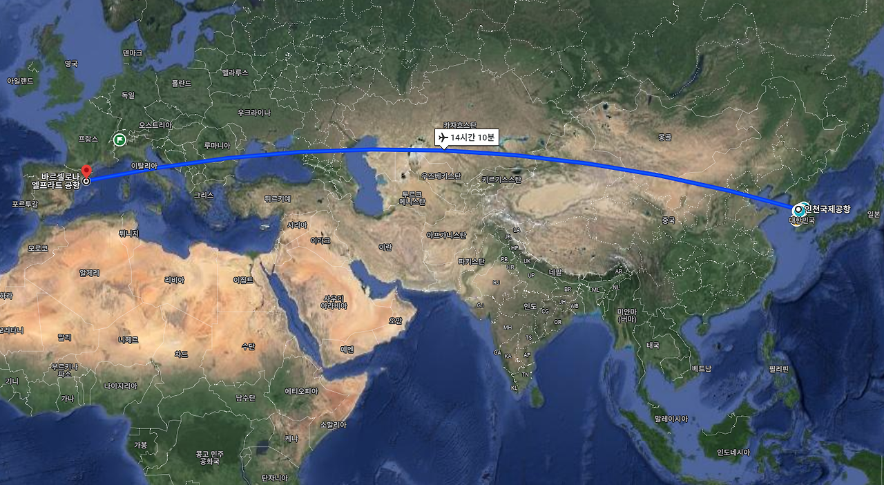 인천공항(서울)에서 바르셀로나 비행시간과 바르셀로나에서 인천공항(서울) 비행시간의 차이
