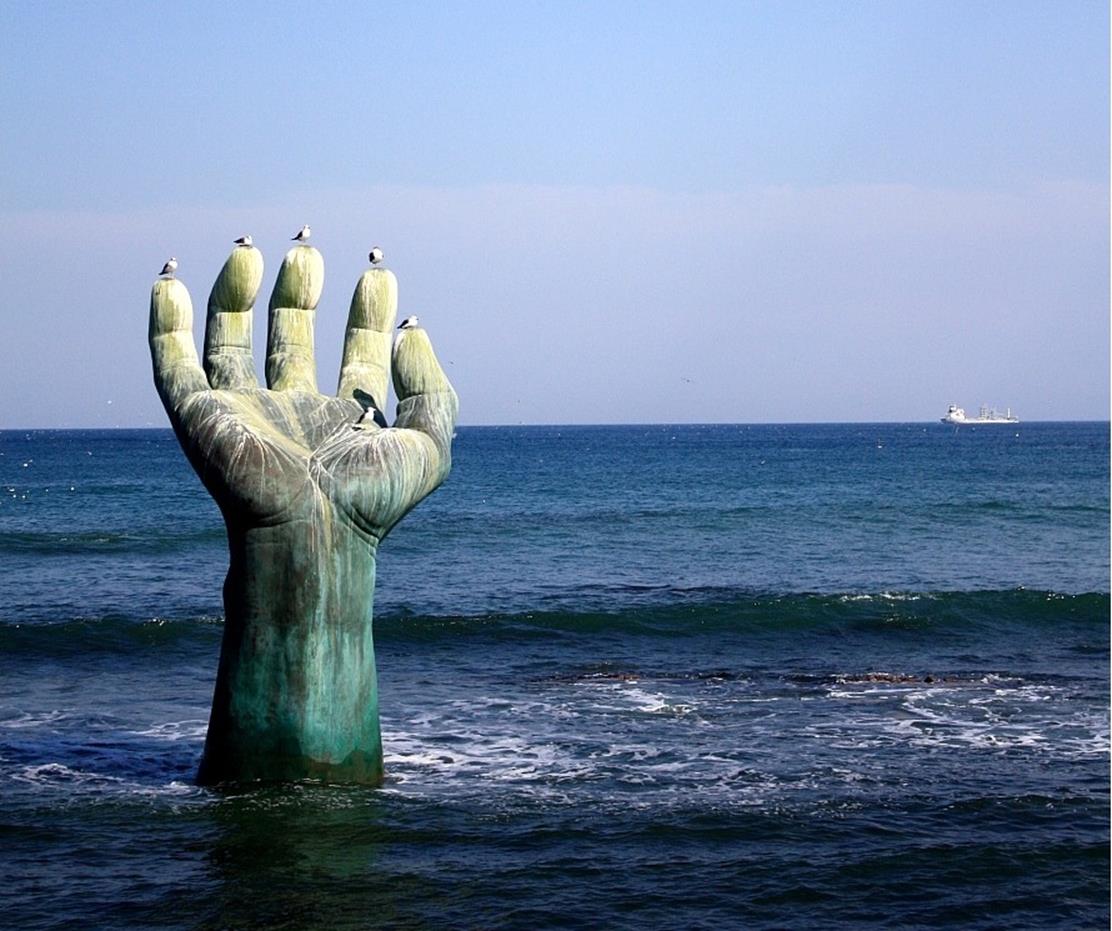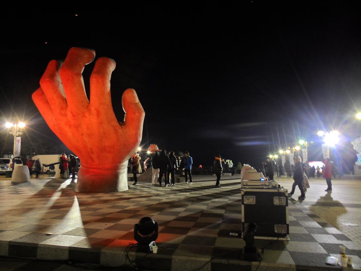 해맞이 광장에 서 있는 왼손의 모습이에요.