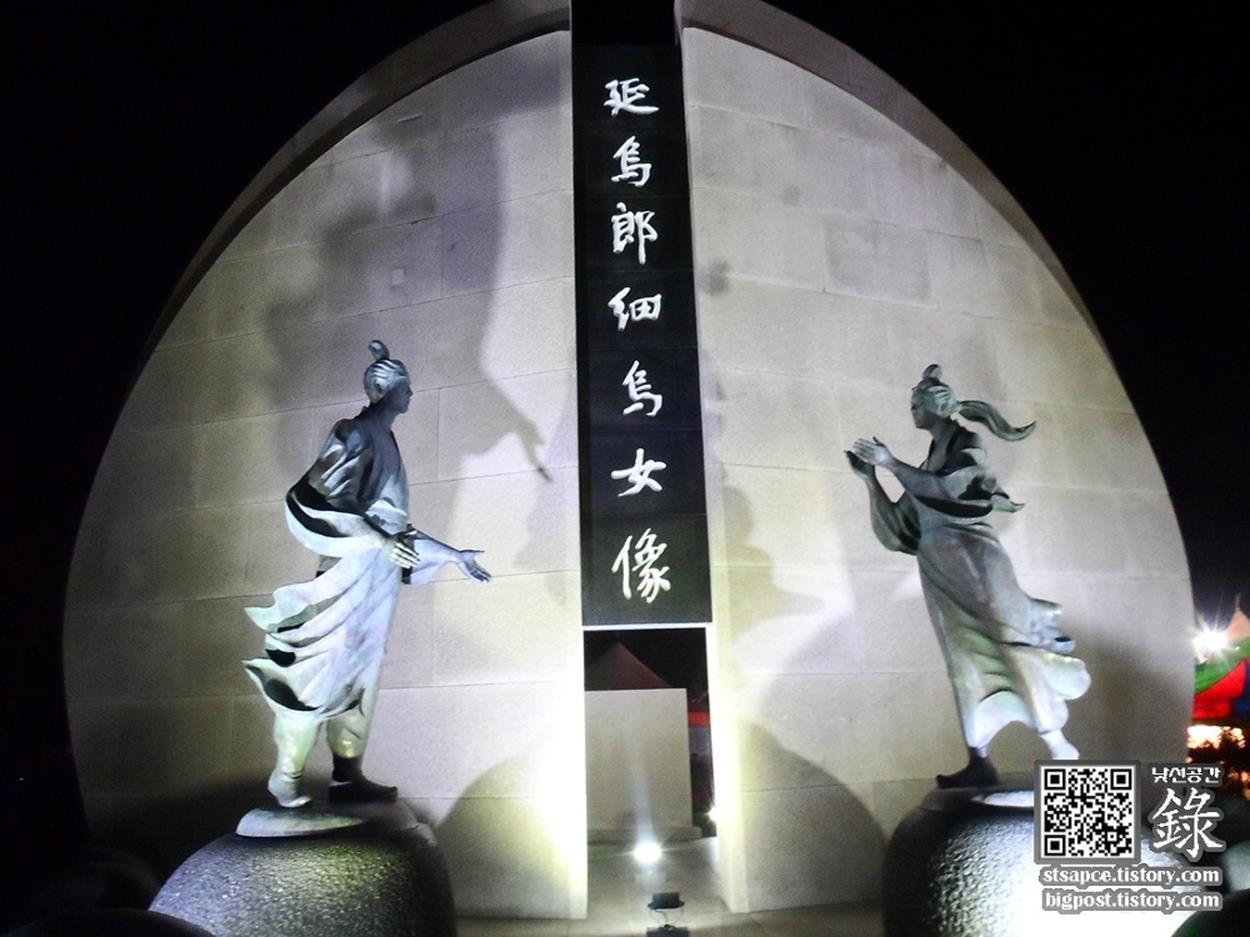 호미곶 해맞이 광장 한편에 서 있는 연오랑과 세오녀의 동상입니다.