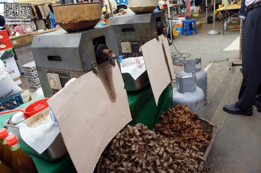 이 연필 깎은 것만 같은 더미는 참기름을 짜고 남은 찌꺼기.