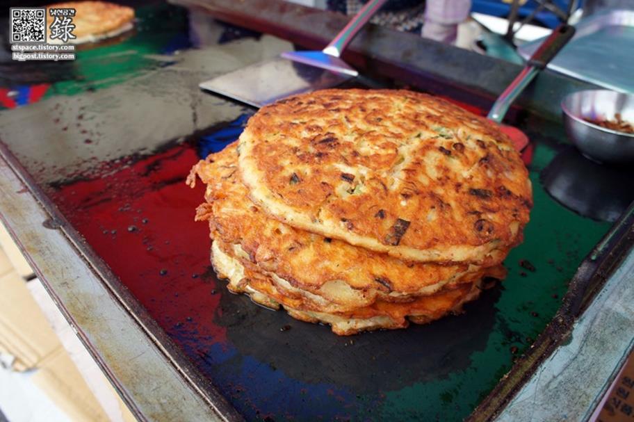 두툼하고 라지사이즈 같아 보이는 녹두전, 빈대떡!