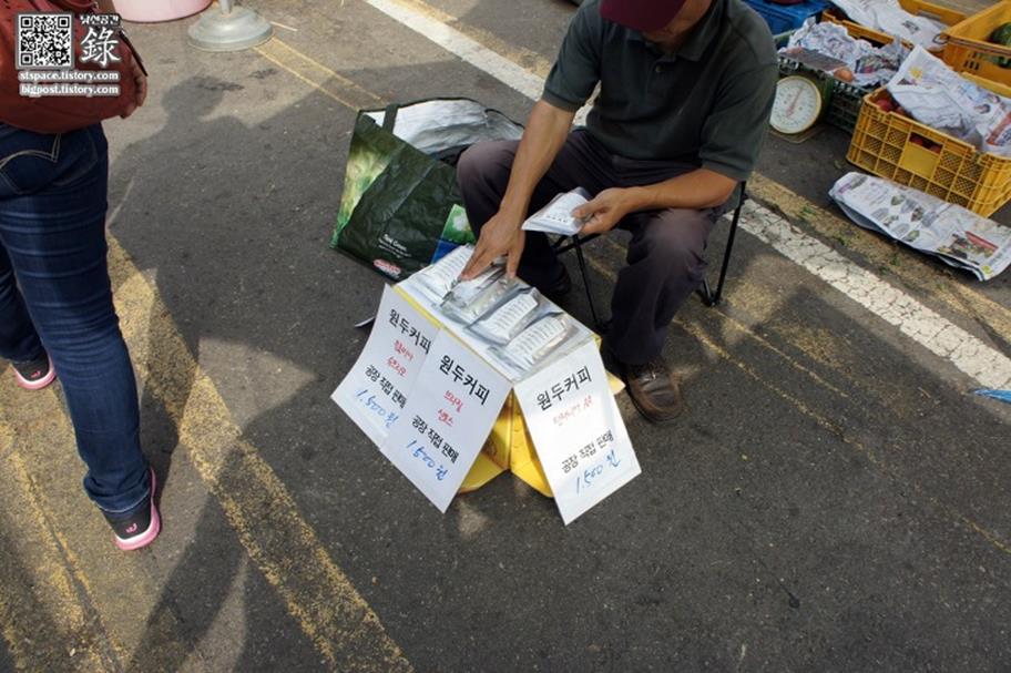 전통시장 길거리 노점에서 만나는 원두커피~ 저 한 봉지에 1500원~ 헐~